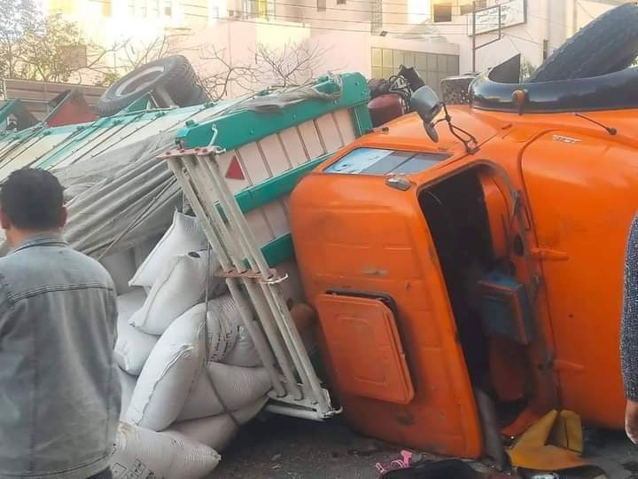 انقلبت سيارة نقل بمقطورة محملة بـ92 طن مواد خام تدخل في صناعة الأسمنت، وذلك في أثناء سيرها بالطريق الصحراوي الغربي بالقرب من مدخل مركز المنيا، بسبب اختلال عجلة القيادة.