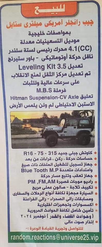 وقال ثابت: "تابعت باندهاش يغلفه بعض الاستغراب وكثير من التفهم تلك الحالة التى أثارها الإعلان المنشور فى الصفحة الأولى من الأهرام بتاريخ 1 أبريل عن سيارة "جيب رانجلر"، وبالطبع لم يخلُ الأمر من دهشة من ذلك الخيال الواسع فى التعليقات. ومن هنا رأيت أن بعضًا من التوضيح قد يكون مفيدًا".