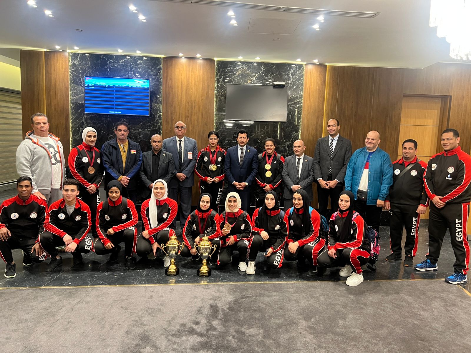 أشرف صبحي يستقبل بعثة منتخب رفع الأثقال بعد إنجاز بطولة العالم للشباب
