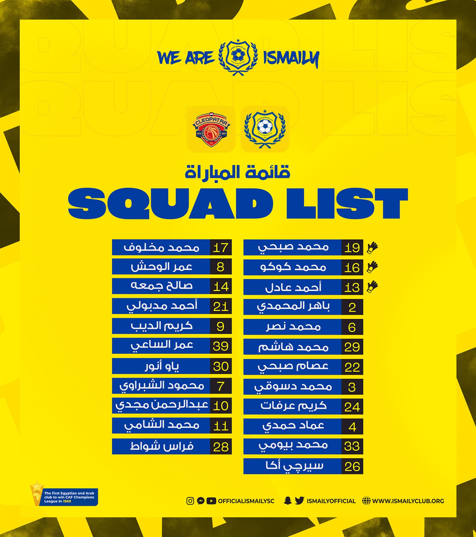 قائمة الاسماعيلي لمواجهة سيراميكا كليوباترا