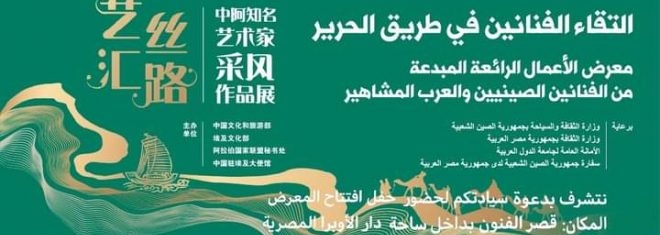 ويقام معرض التقاء الفنانين فى طريق الحرير بتوقيع الفنانين الصينيين والعرب بقصر الفنون بدار الأوبرا المصرية.