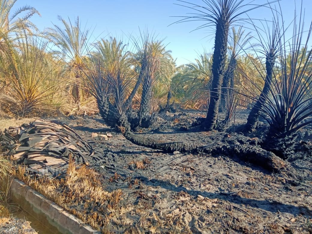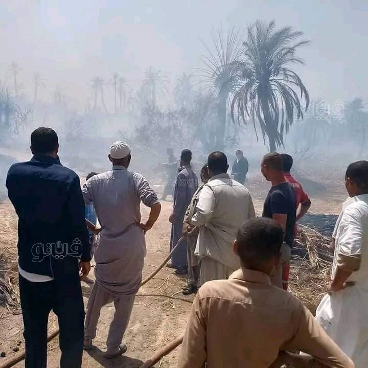 حيث اشتعلت النيران بأماكن متفرقة في مساحة تقدر بحوالي 9 أفدنة نتيجة الرياح الشديد وارتفاع الحرارة بسيوة.
