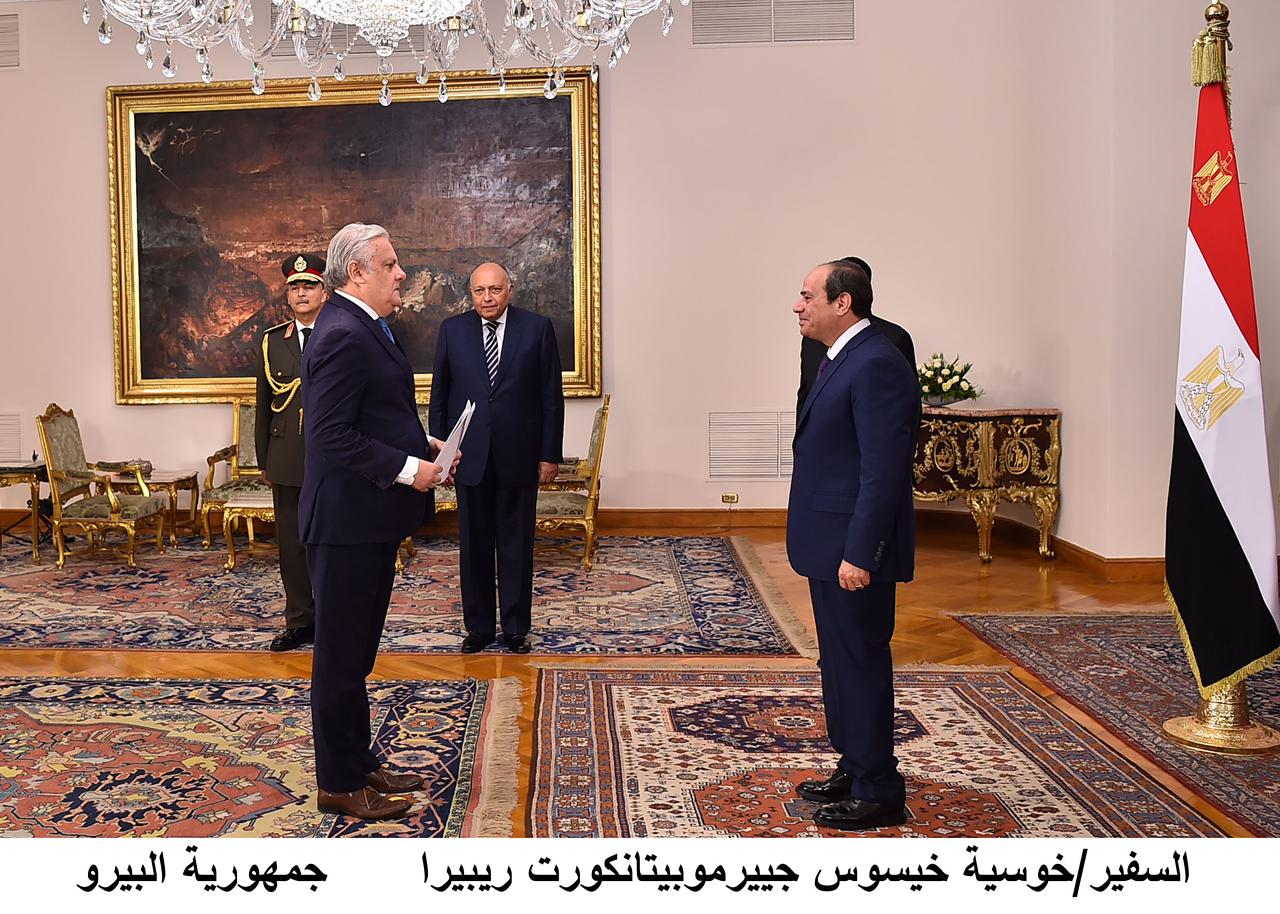 وقد رحب الرئيس بالسفراء الجدد، معربا عن التمنيات لهم بالتوفيق في أداء مهامهم بالقاهرة، ومؤكدا حرص مصر على تعزيز أطر العلاقات الثنائية مع دولهم في جميع المجالات، واستمرار التواصل والتنسيق إزاء مختلف القضايا الإقليمية والدولية محل الاهتمام المشترك