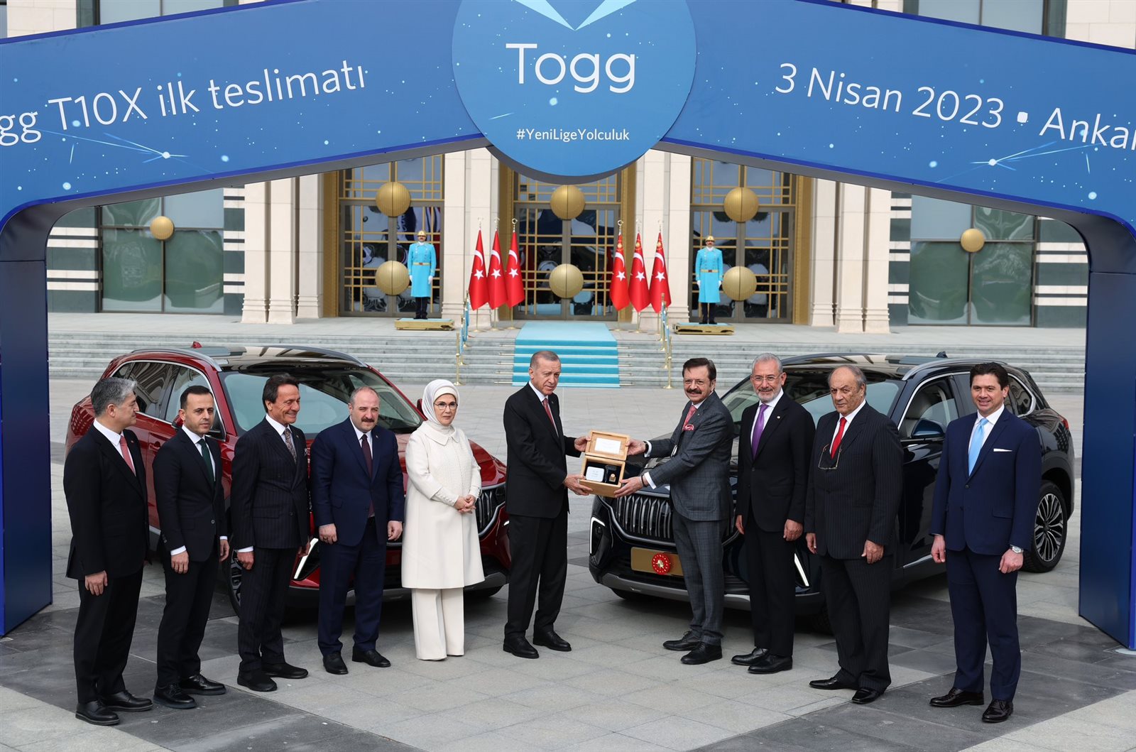 أردوغان، نشرت دائرة الاتصال في الرئاسة التركية مشاهد لقيادة الرئيس التركي رجب طيب أردوغان وعقيلته أمينة أردوغان لأول سيارة من طراز "توج" (TOGG) الكهربائية المحلية.