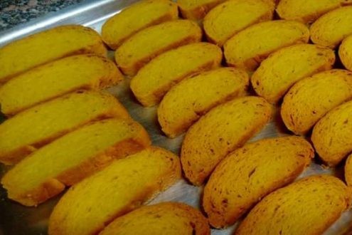 -بعد حدوث التخمر للعجين تُقطع على شكل صوابع أو أقراص ثم توضع في صاجات مدهونة بالسمن.