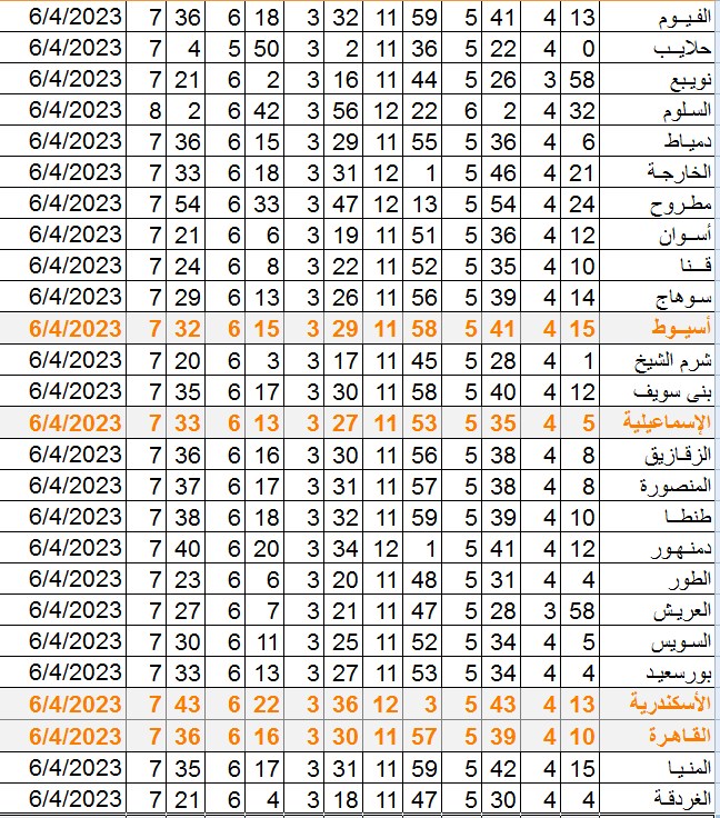 مواقيت الصلاة اليوم بتوقيت أسيوط