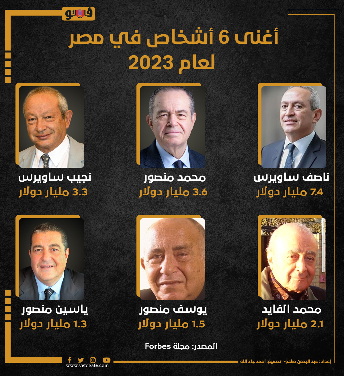 أغنى 6 أشخاص في مصر لعام 2023 (إنفوجراف) الخميس 06/أبريل/2023 - 03:49 م 4/6/2023 3:49:21 PM فوربس، فيتو شارك طباعة 18 حجم الخط شارك طباعة أغني شخص في مصر أثرياء مصر اخبار العالم أثرياء العالم مجلة فوربس ناصف ساويرس