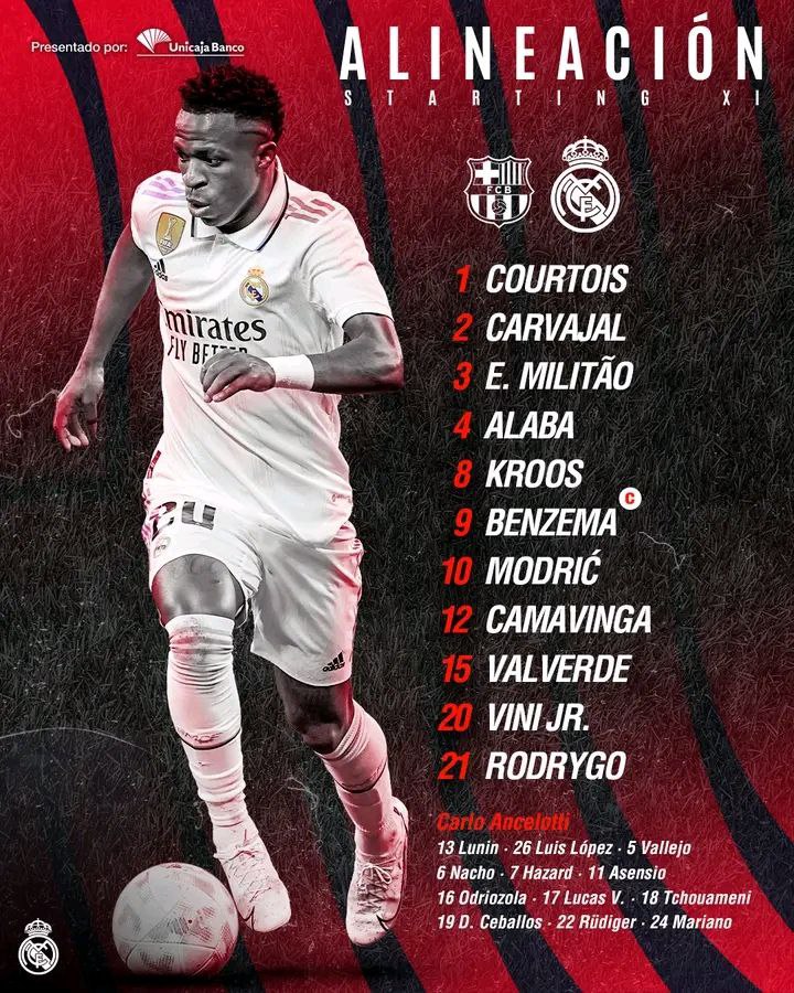وأعلن كارلو أنشيلوتي مدير فني نادي ريال مدريد عن تشكيل فريقه وجاء كالآتي:
