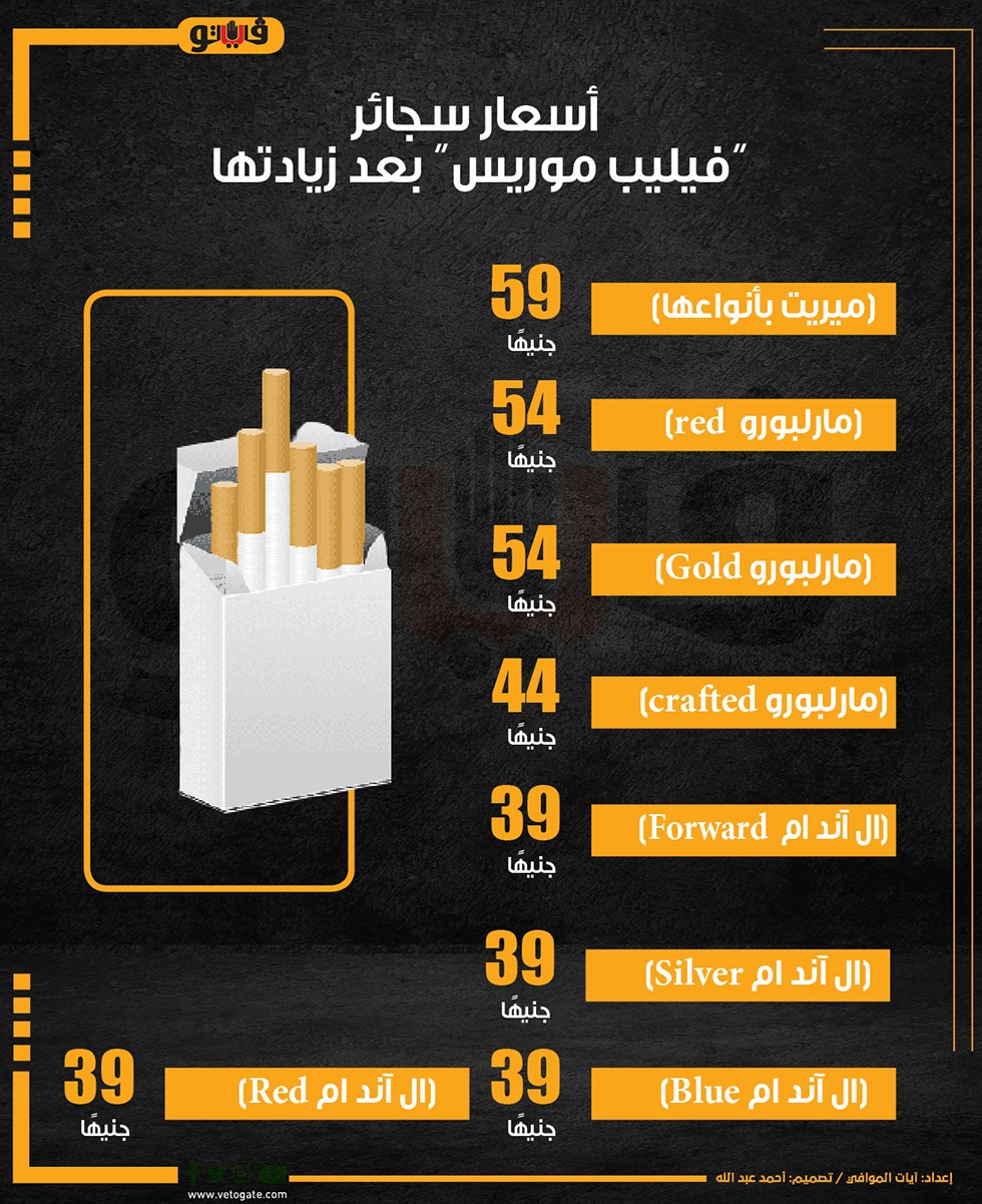 أسعار سجائر "فيليب موريس" بعد زيادتها (إنفوجراف) الأربعاء 05/أبريل/2023 - 08:05 م 4/5/2023 8:05:15 PM سجائر آيات الموافى شارك طباعة 18 حجم الخط شارك طباعة ميريت مرلبورو ال اند ام