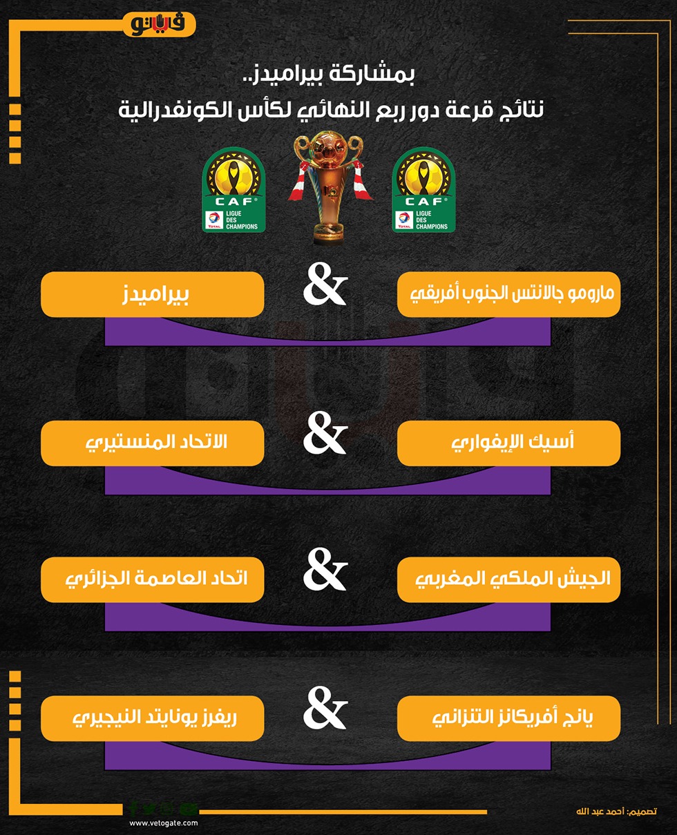 بمشاركة بيراميدز.. نتائج قرعة دور ربع النهائي لكأس الكونفدرالية (إنفوجراف) الأربعاء 05/أبريل/2023 - 09:22 م 4/5/2023 9:22:24 PM نتائج قرعة دور ربع النهائي لكأس الكونفدرالية، فيتو شارك طباعة 18 حجم الخط شارك طباعة