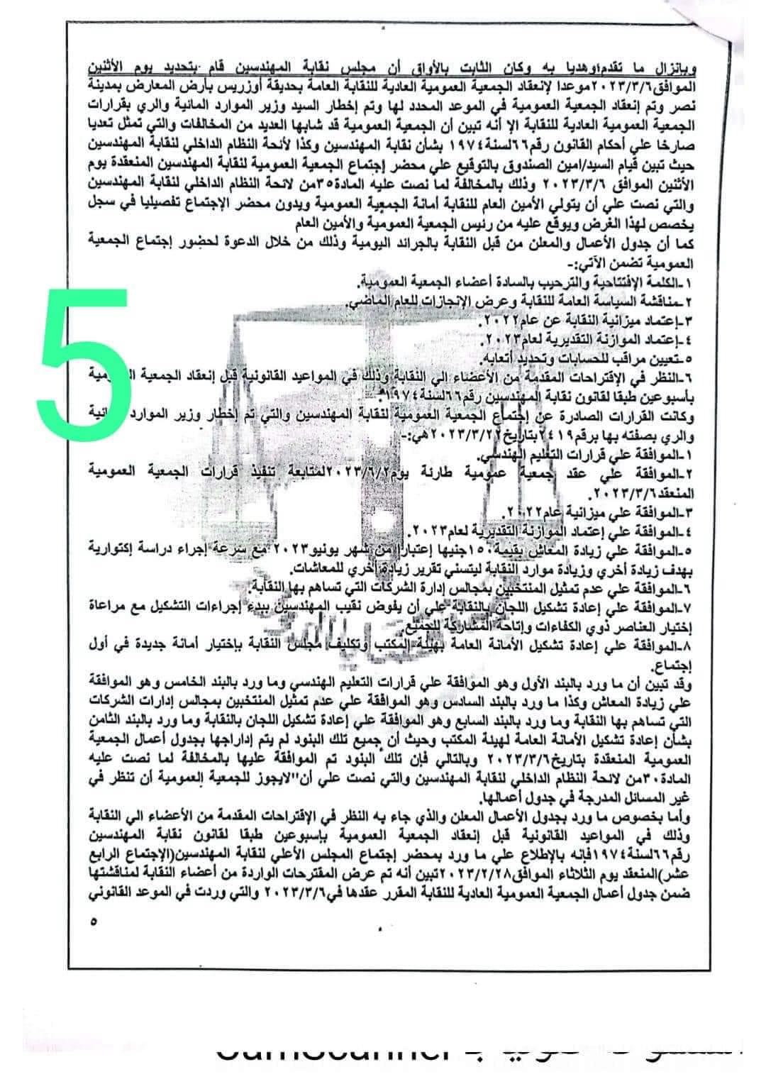 وقال المهندس طارق النبراوي نقيب المهندسين في نص الدعوة التي وجهها للأعضاء: ندعوكم لحضور اجتماع المجلس الأعلى بمقر النقابة العامة للمهندسين 30 شارع رمسيس، القاهرة، وذلك يوم الأربعاء الموافق 19-04-2023 في تمام الساعة الثانية عشرة ظهرا بقاعة عثمان أحمد عثمان بالدور الأول.