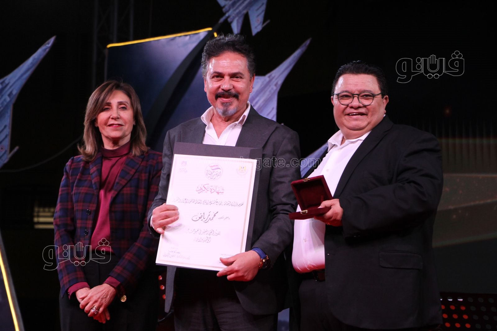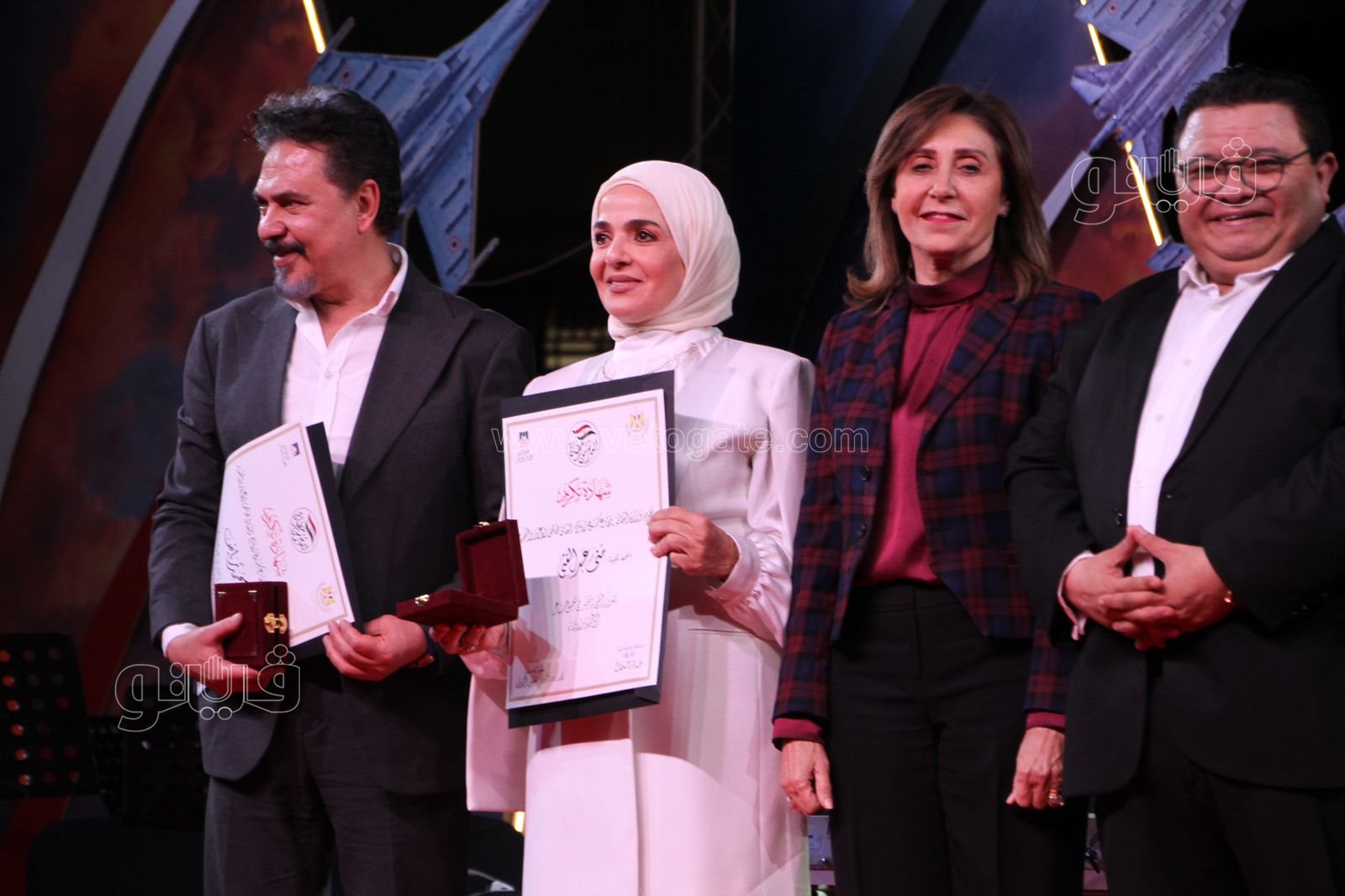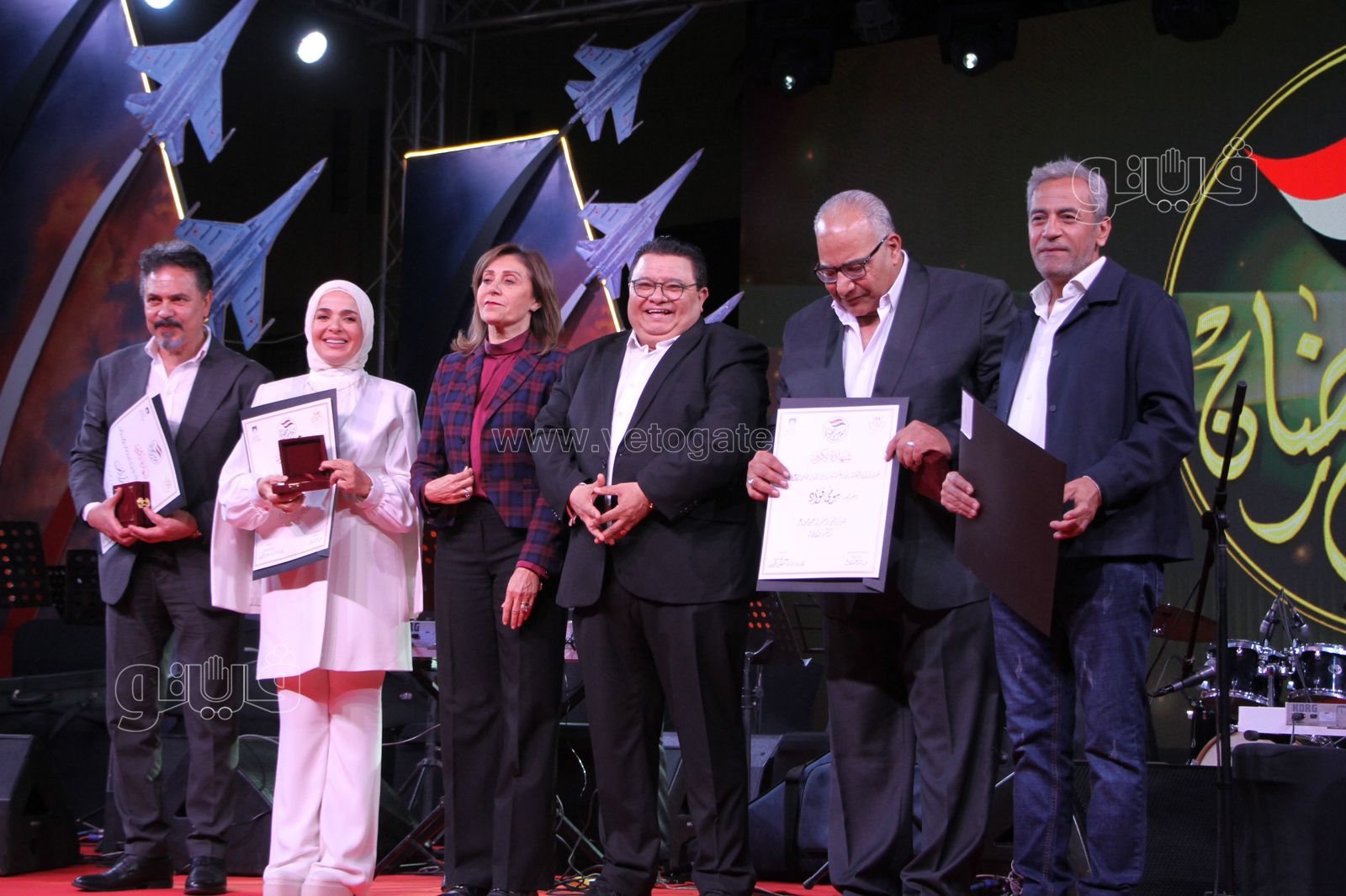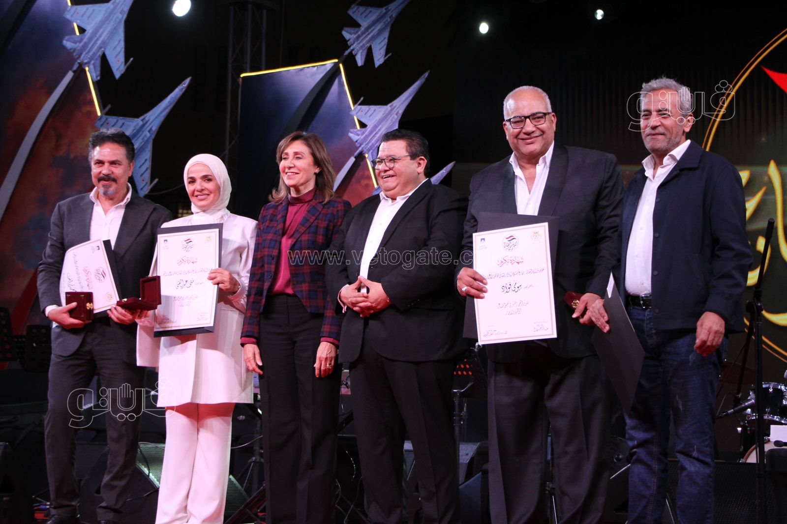 وسلمت وزيرة الثقافة الدكتورة نيفين الكيلاني درع التكريم لكل من الفنانة منى عبد الغني والفنان بيومي فؤاد، وصبري فواز، ومحمد رياض.