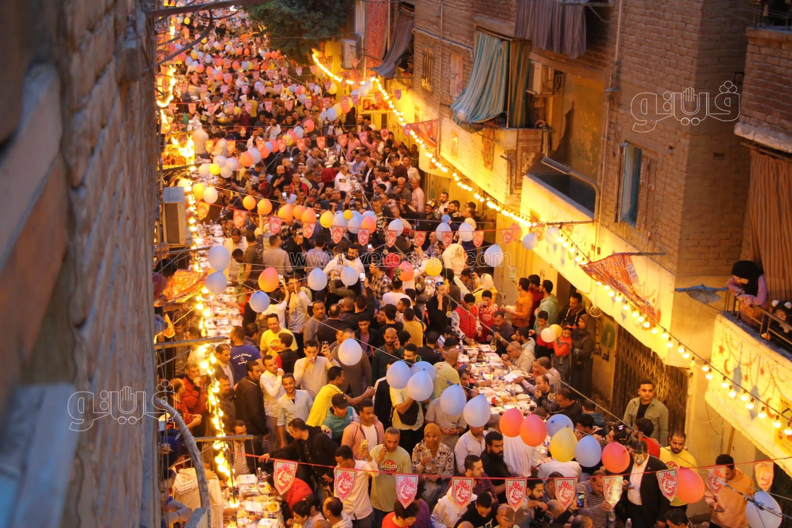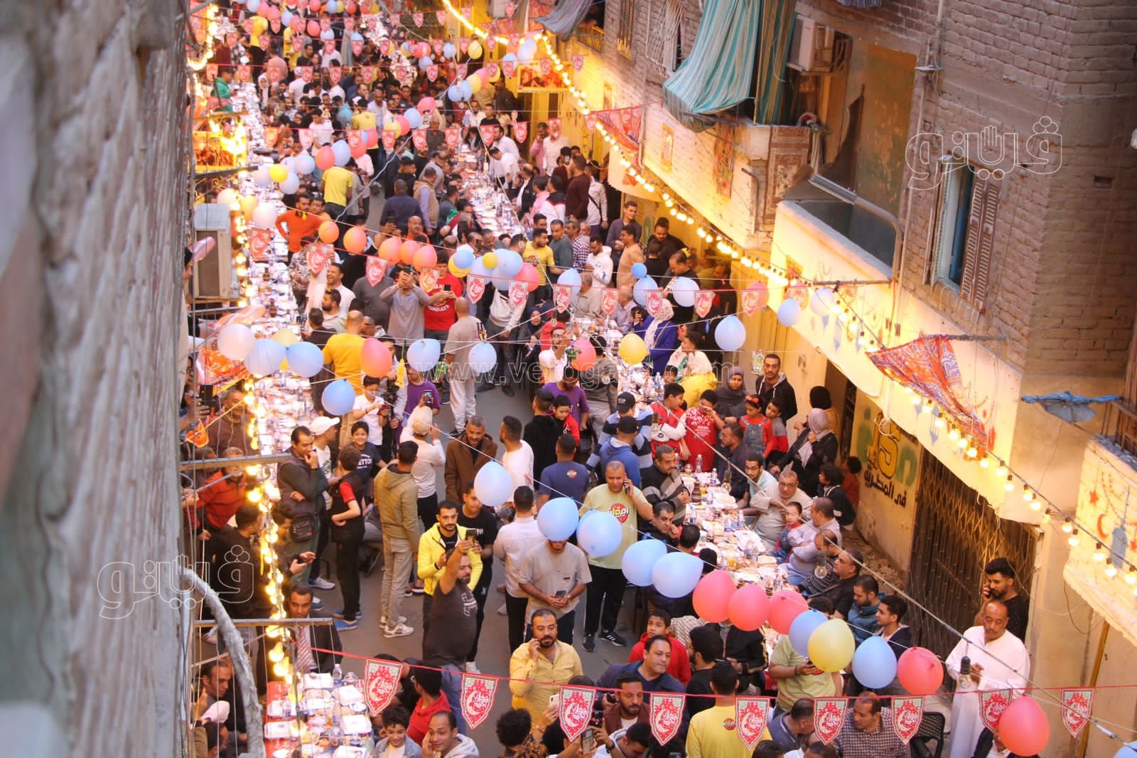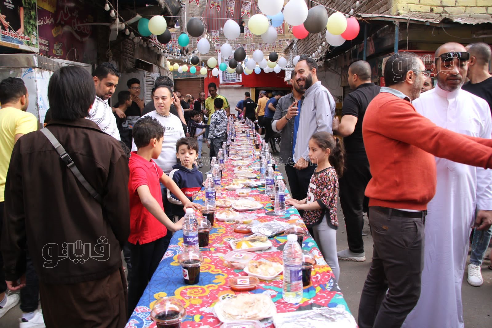 تناول أهالي المطرية الإفطار على أكبر مائدة إفطار للصائمين بالمنطقة وسط حالة من البهجة والسعادة.