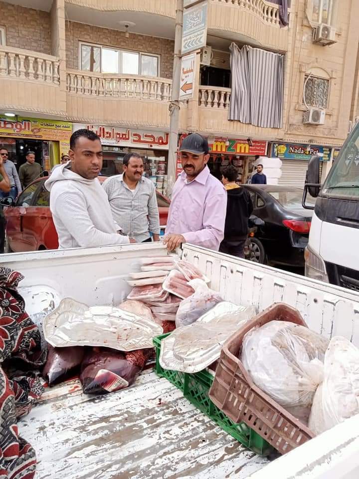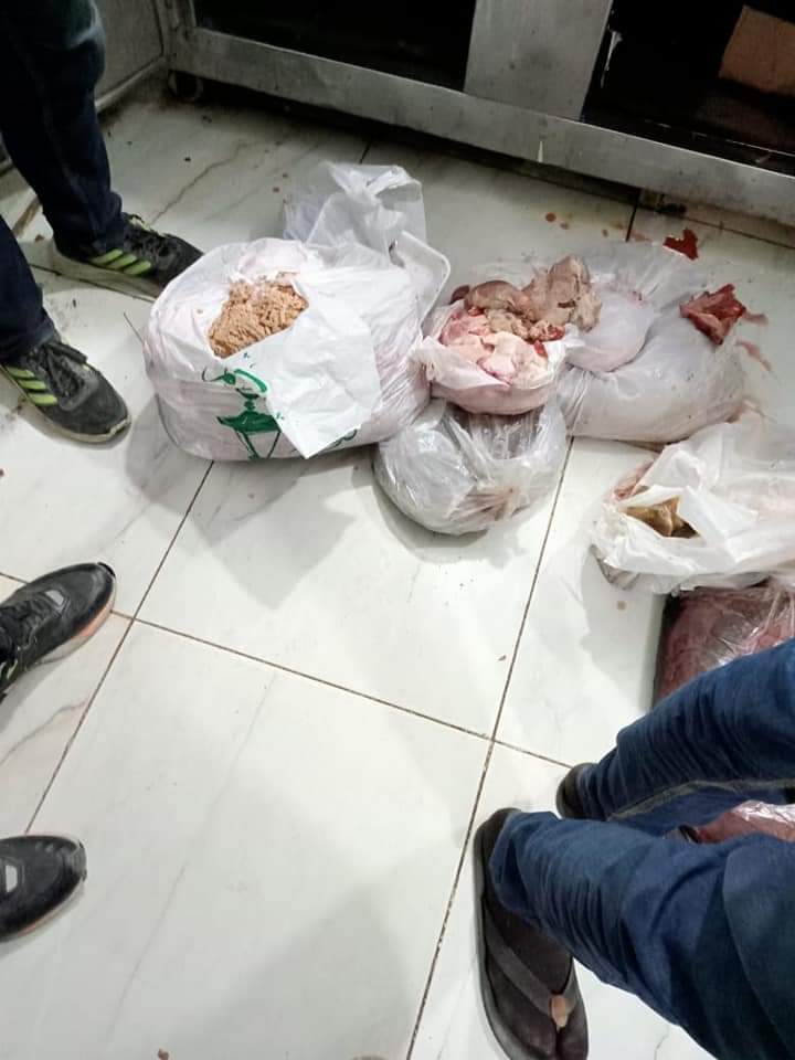 وتم التحفظ على اللحوم وتحرر محضرين مخالفه بمعرفه الطب البيطري واتخاذ كافة الاجراءات القانونيه حيال المخالفين.