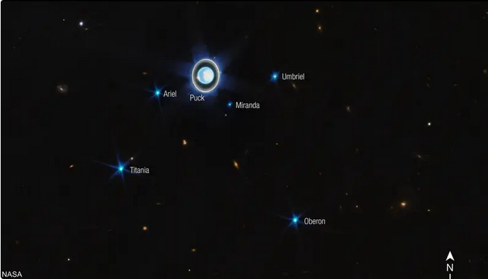 وثَّق التلسكوب الفضائي العملاق جيمس ويب في سابقة من نوعها صورة للعملاق الجليدي تظهر الحلقات غير المرئية للكوكب والأقمار الـ 27 التي تدور في فلكه.