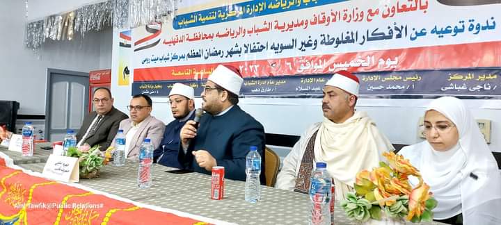 نظمت مديرية الشباب والرياضة بالدقهلية "الإدارة العامة للشباب"بالتعاون مع مديرية الأوقاف ندوة توعوية عن "الأفكار المغلوطة وغير السوية" إحتفالا بشهر رمضان المعظم بإدارة شباب دكرنس" مركز شباب ميت رومى".