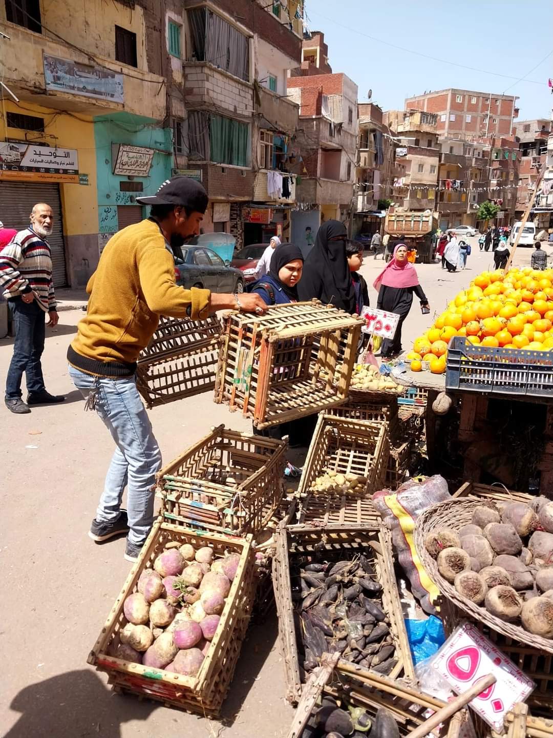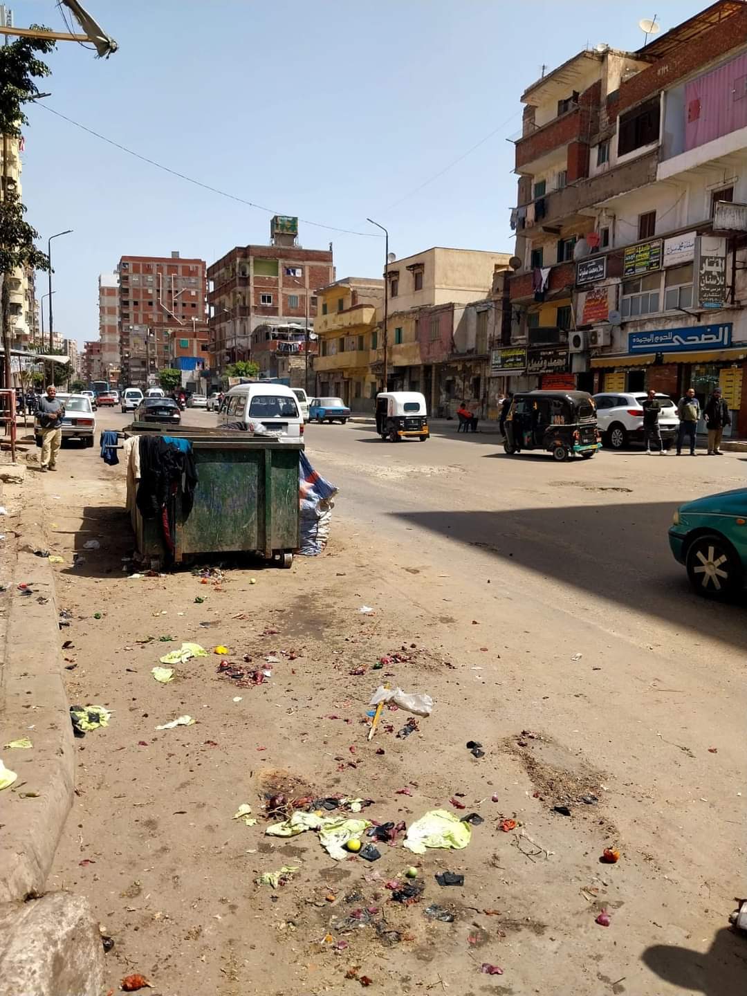 وأخرى امام شارع الجيش بافتراش بعض الباعة للطريق مما يعيق حركة المارة والسيارات