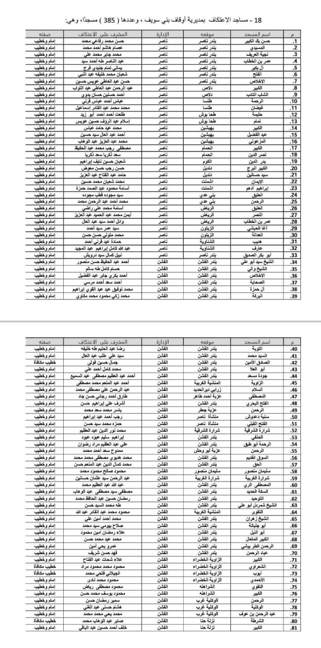 مساجد الاعتكاف ببنى سويف