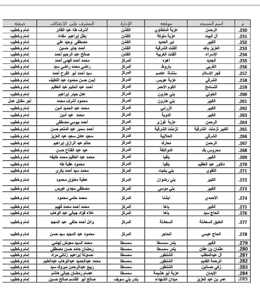 ضوابط الاعتكاف بمساجد بنى سويف