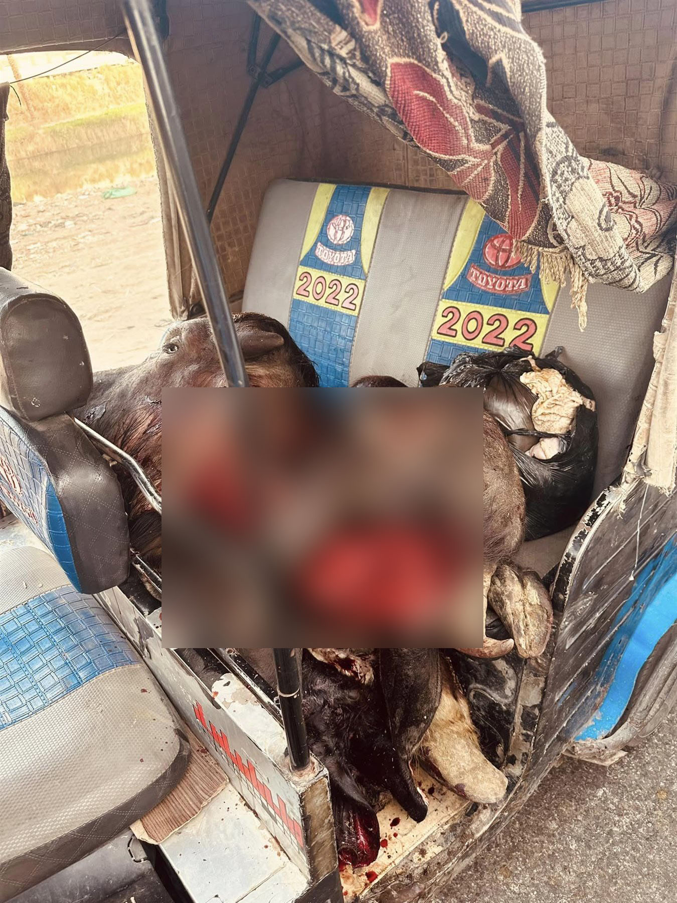 تمكنت الطب البيطري وإدارة المجازر بمحافظة سوهاج من ضبط توك توك يحمل للحوم ويقوم بتوزيعها على المحلات الجزارة مذبوحة خارج السلخانة فى البيوت بمدينة المنشأة بسوهاج.