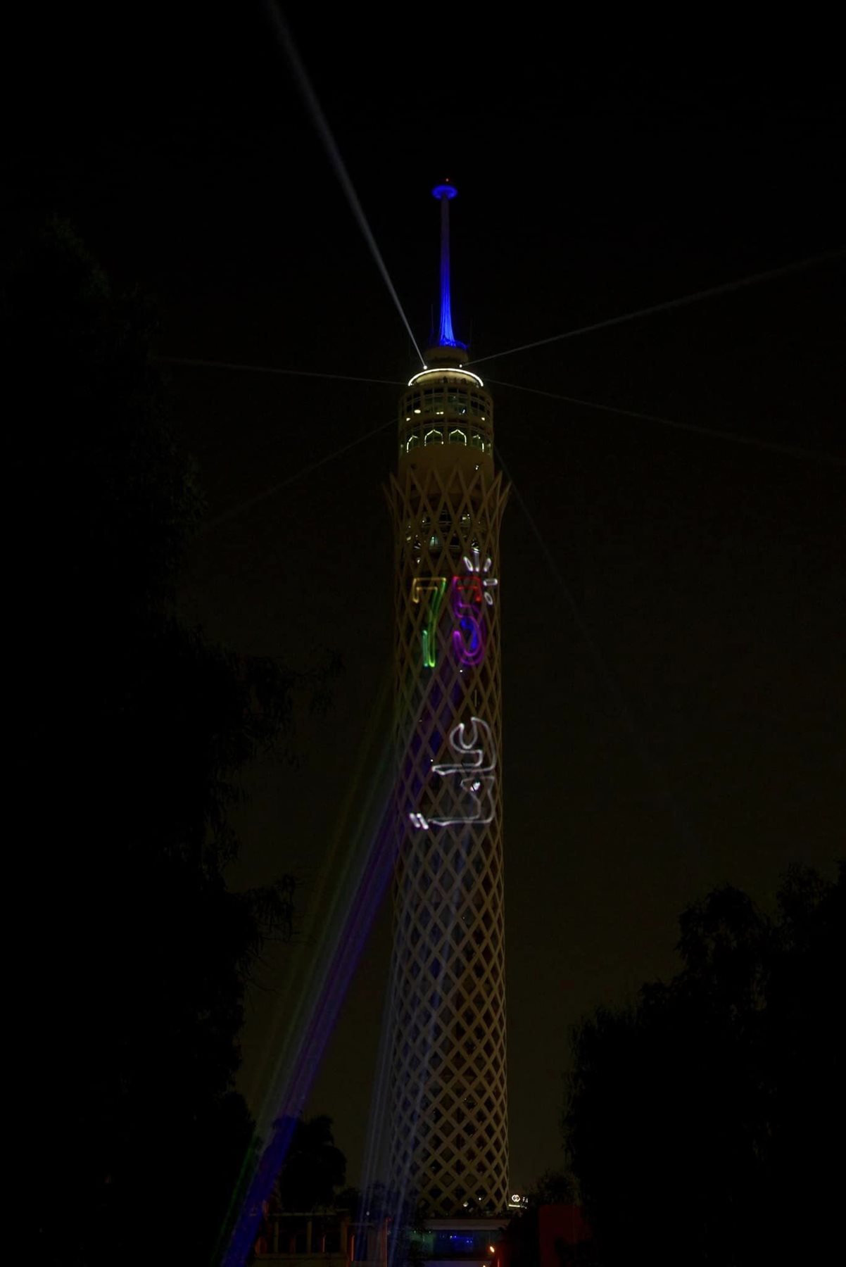أضيء برج القاهرة الدولي بالألوان احتفالًا بالذكرى الخامسة والسبعين لتأسيس منظمة الصحة العالمية، وكتب على جسد البرج 75 عاما من تحسين الصحة.