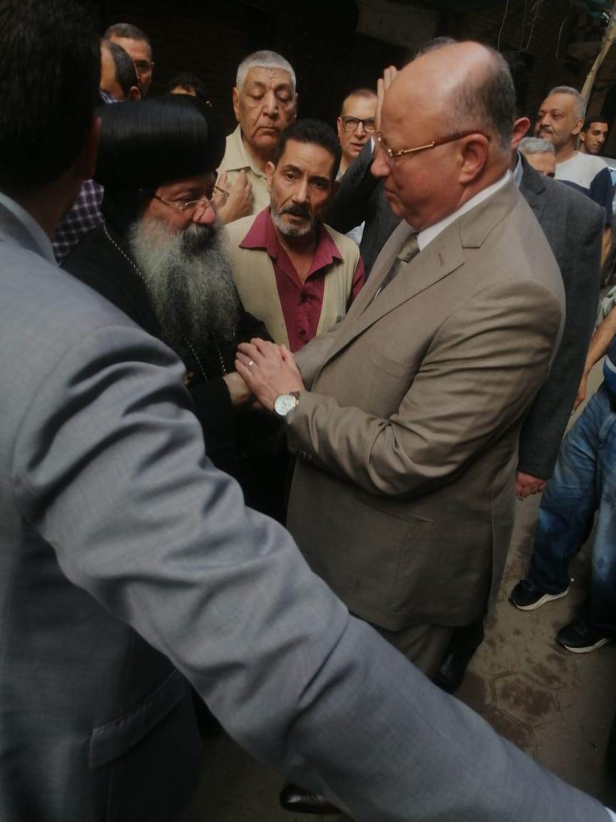 محافظ القاهرة يصل موقع حريق كنيسة الأنبا إبرام بالزاوية الحمراء (صور)
