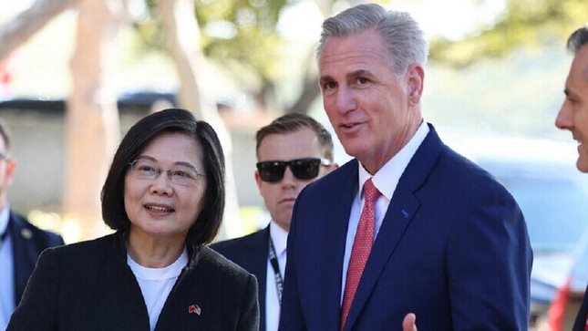 إعادة جديدة لمشهد زيارة رئيس مجلس النواب الأمريكي السابقة نانسي بيلوسي إلى تايوان في أغسطس الماضي، وهو الأمر الذي أثار غضب بكين وأشعل التوتر في منطقة مضيق تايوان، ليتكرر المشهد بعد عدة اشهر من جديد بمقابلة رئيسة تايوان برئيس مجلس النواب الامريكي كيفين مكارثي، ليعقبها الجيش الصيني بتدريبات عسكرية ضخمة.