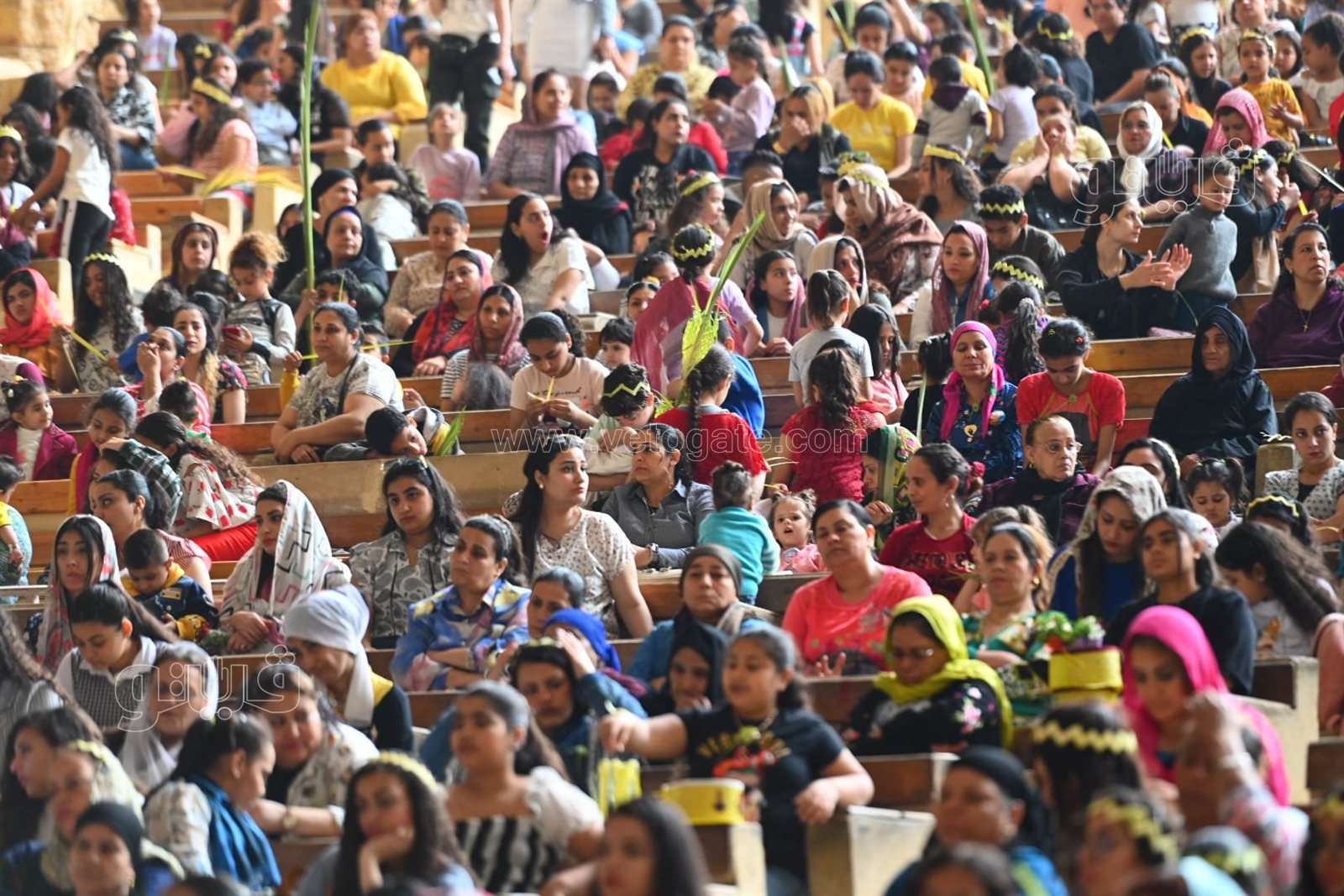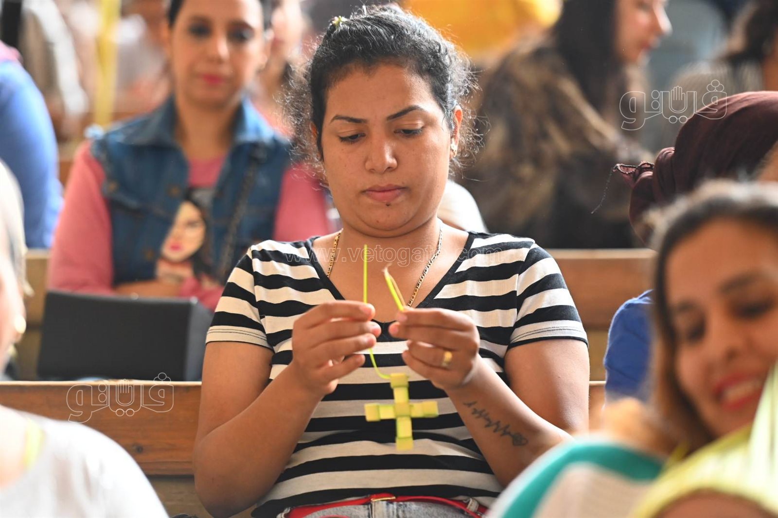 وحرص الحضور من على حمل زعف النخيل والذي اتخذ اكثر من شكل أبرزها القلب والتاج، احتفالا بذكرى دخول السيد المسيح إلى أورشليم راكبا على جحش ابن اتان.