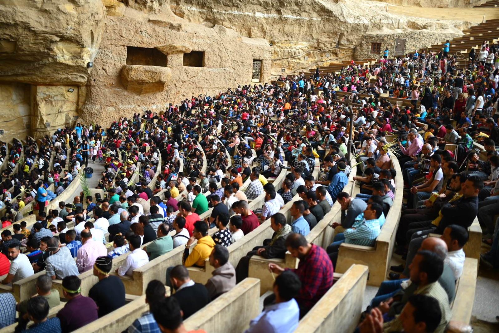 صلى عشرات من الأقباط الأرثوذكس قداس أحد الشعانين أو ما يعرف بـ أحد الزعف في دير القديس سمعان الخراز بجبل المقطم، وسط حضور بعض كهنة الكنيسة ورهبان الدير.