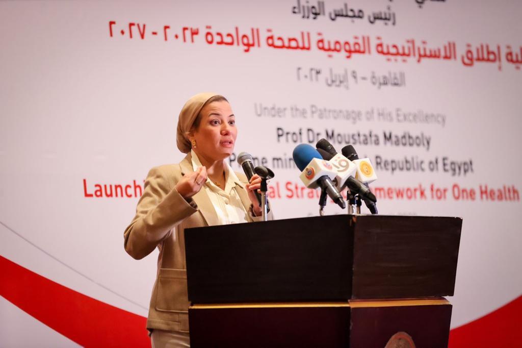 جاء هذا فى كلمة الدكتورة ياسمين فؤاد وزيرة البيئة خلال إطلاق جمهورية مصر العربية رسميا "الإطار الإستراتيجي القومي للصحة الواحدة 2023 –2027" كخارطة طريق مشتركة للصحة الواحدة بين وزارة الصحة والسكان ووزارة الزراعة واستصلاح الأراضي ووزارة البيئة، بالتعاون مع منظمة الصحة العالمية في مصر ومنظمة الأمم المتحدة للأغذية والزراعة (الفاو) في مصر، وذلك بحضور الدكتور خالد عبدالغفار وزير الصحة، والدكتور أيمن عاشور وزير التعليم العالي والبحث العلمي، واللواء هشام آمنة وزير التنمية المحلية وممثلى مجلس النواب والشيوخ وممثلي الوزارات المعنية والمنظمات الدولية.