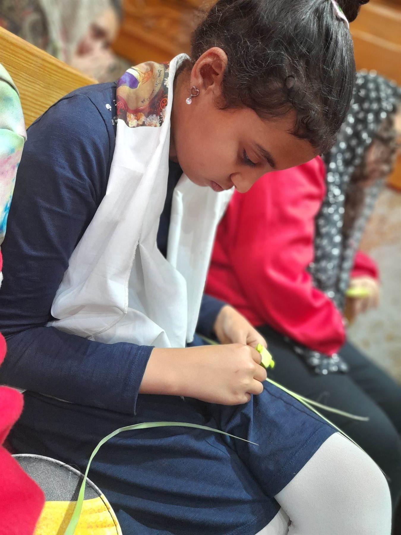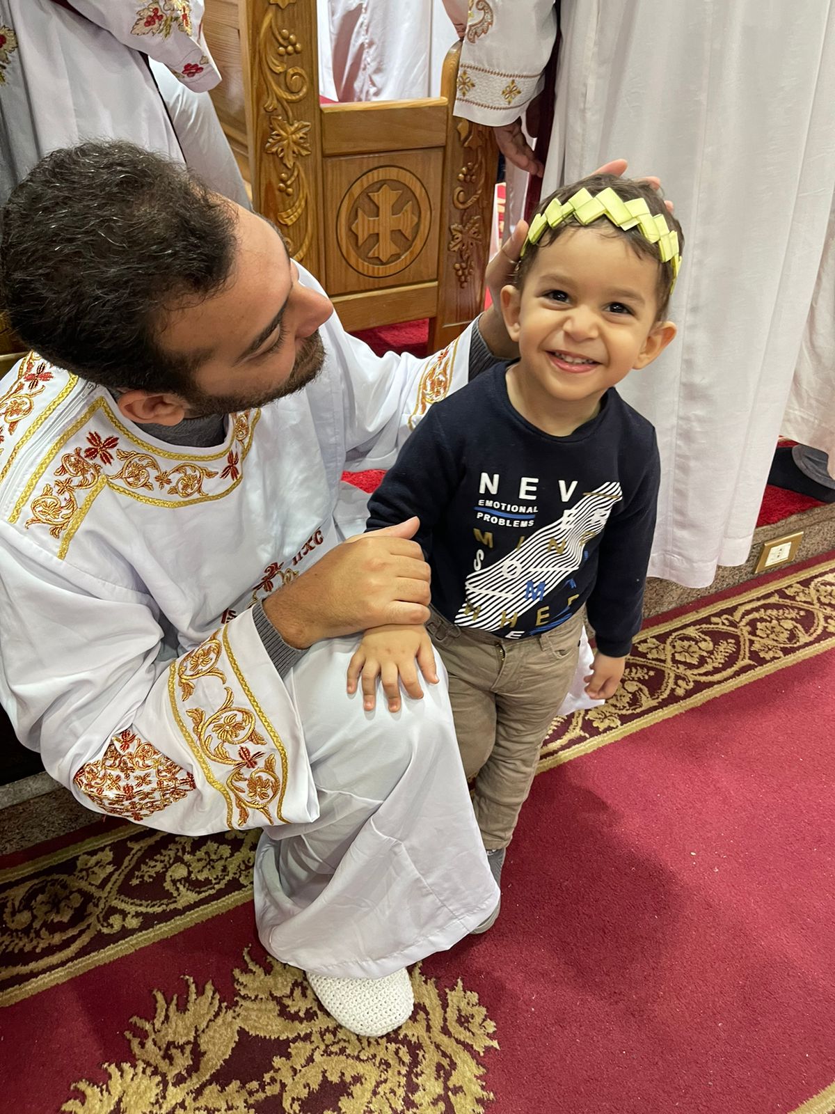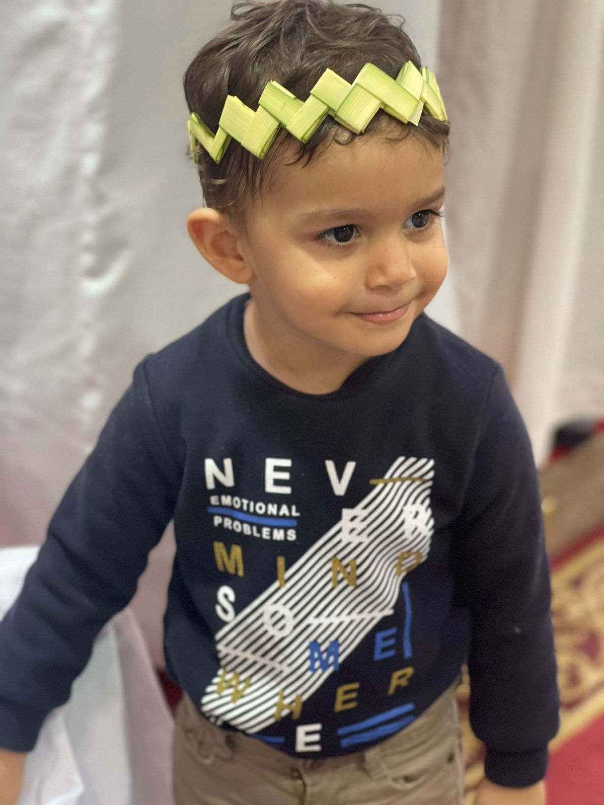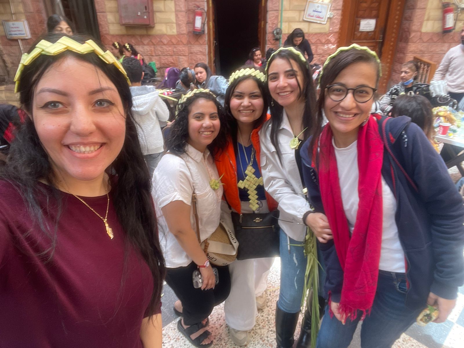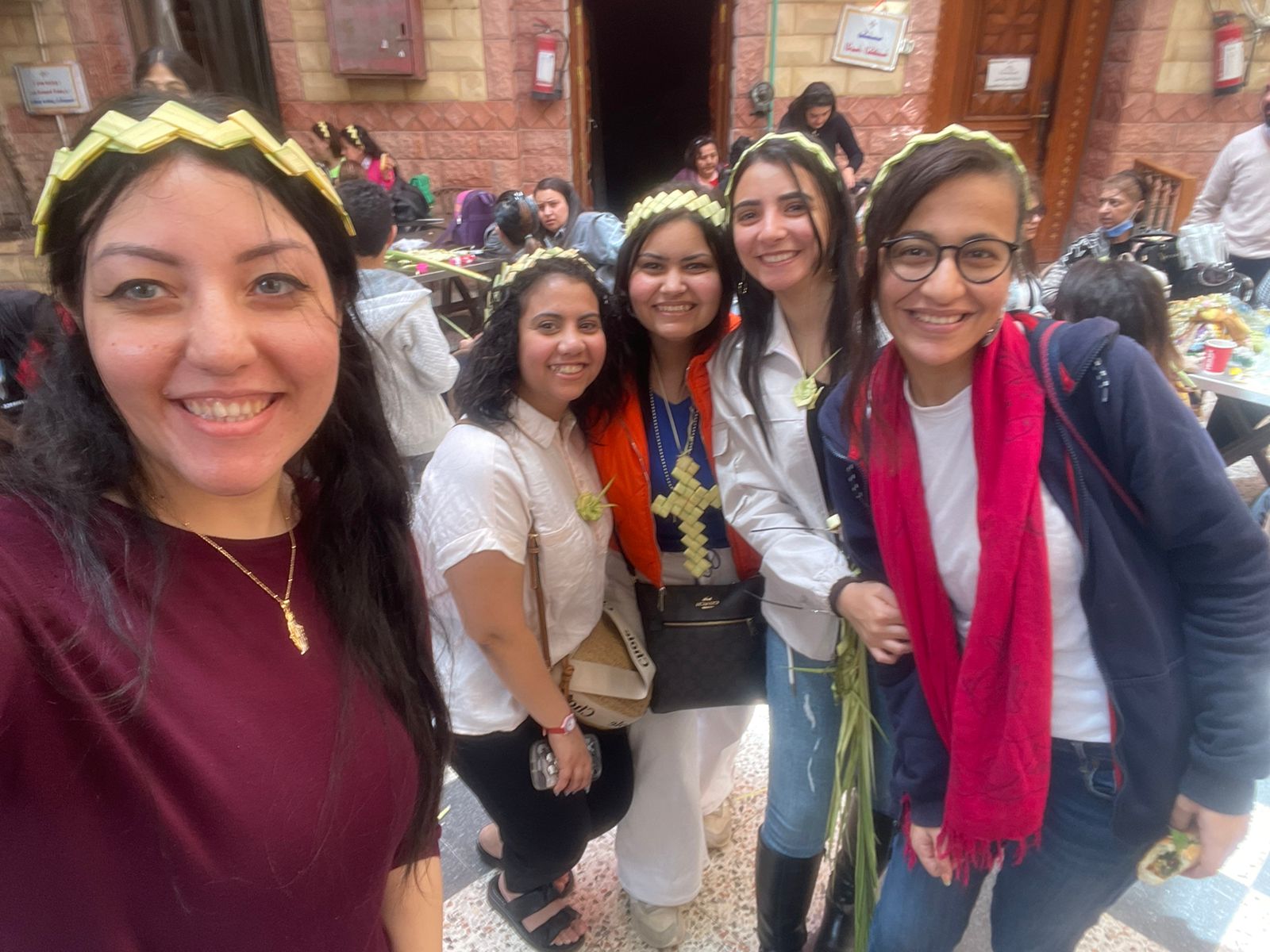 وقام الأطفال والكبار على حد السواء بتصميم العشرات من الإبتكارات المتنوعة من الخوص كالأسورة والتاج وقاموا بإرتداءها بجانب تصميم الصلبان بالخوص، ثم قاموا بالتقاط الصور التذكارية بها وسط أجواء العائلة والأصدقاء والفرحة بين الجميع.