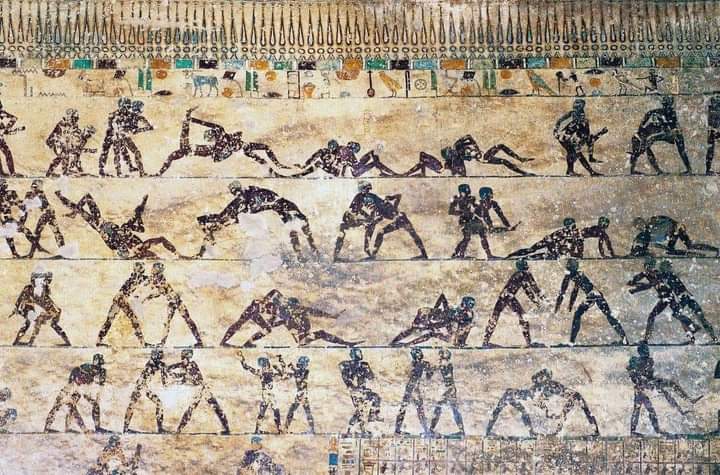 ومارس المصري القديم العديد من أنواع الرياضة، وظهر ذلك على ما تركه لنا المصري القديم من نقوش ومناظر، سواءً على جدران المعابد أو المقابر أو على الأوستراكا والبردي، وأشهر هذه المناظر على الإطلاق كانت مناظر مقابر بني حسن منها المصارعة والملاكمة وحمل الأثقال.