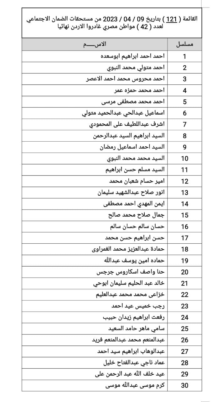 تحويل مستحقات الضمان الاجتماعي لـ 42 عاملًا مصريًا غادروا الأردن