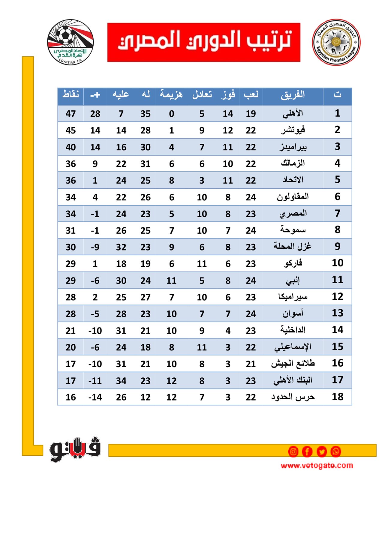 1- الأهلي 47 نقطة