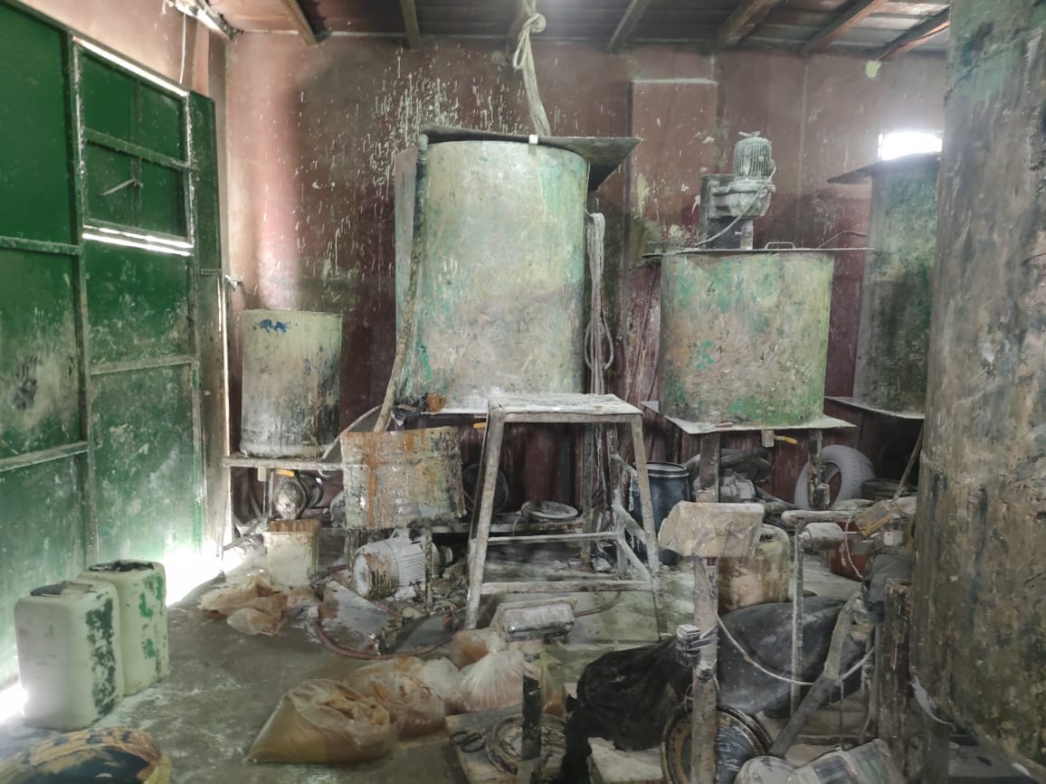 وعقب تقنين الإجراءات بالاشتراك مع الإدارة العامة لشرطة التموين والتجارة الداخلية تم استهداف المصنع وضبط المتهم وبتفتيش المصنع عُثر بداخله على (5 طن بودرة سيراميك بدون بيانات – 5 طن قشر وكسر فول سودانى – 2,500 طن سمسم – 1 طن دقيق – 200 لتر زيت طعام).