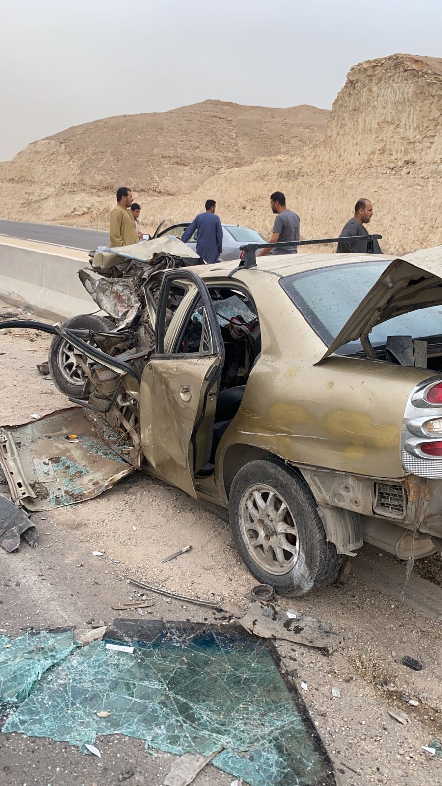 إصابة 4 أشخاص في تصادم بين سيارتين أعلى الطريق الأوسطي (صور)