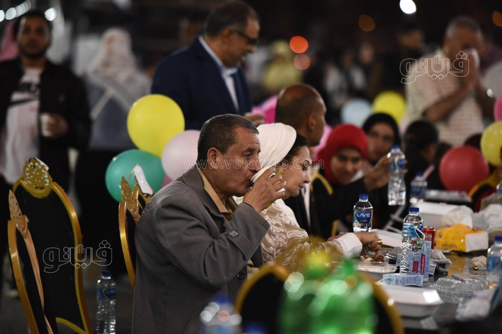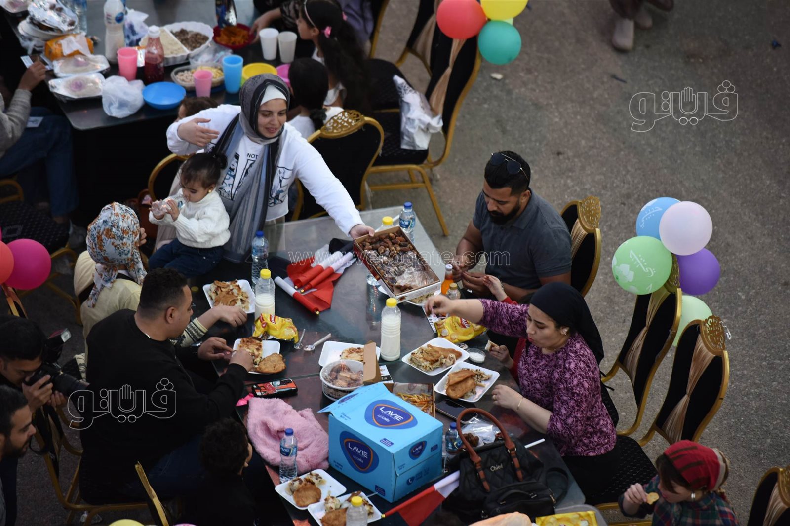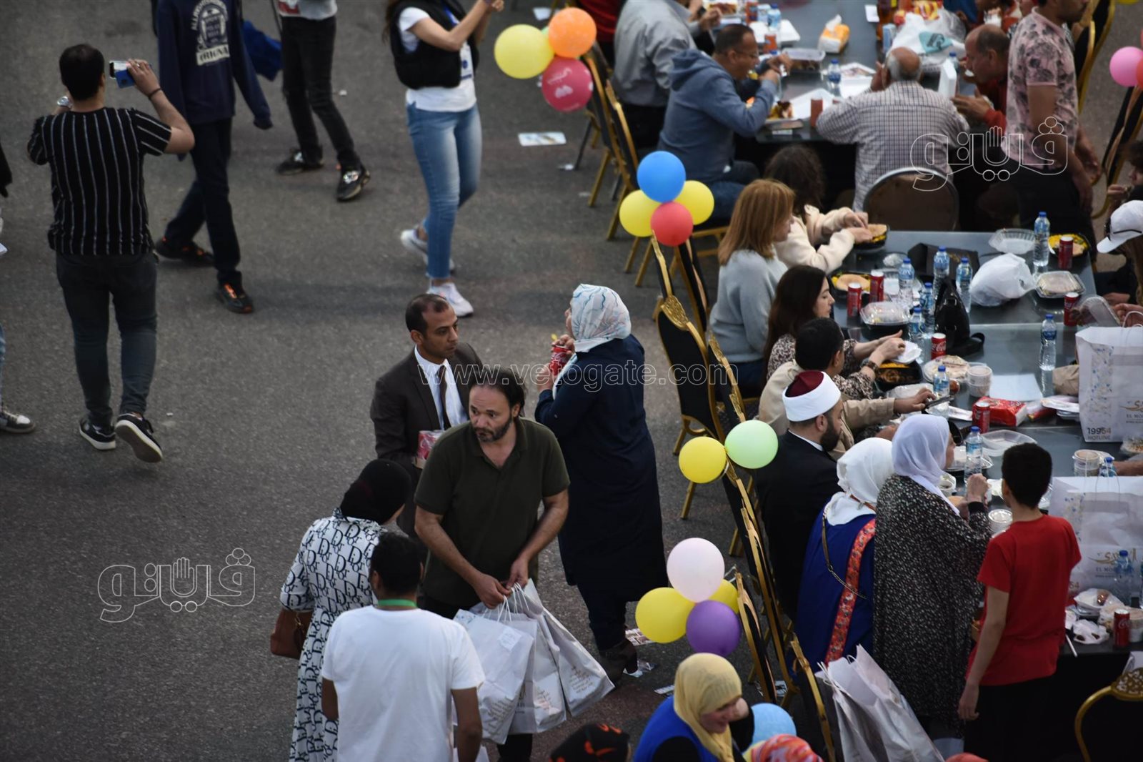 ورصدت عدسة فيتو حجم وطول مائدة الإفطار التي امتدت على طول الشارع، وسط حالة من السعادة سيطرت على الحضور خاصة مع الفقرات الترفيهية وانتشار عرائس رمضان وشخصيات بوجي وطمطم وبكار للعب مع الأطفال.