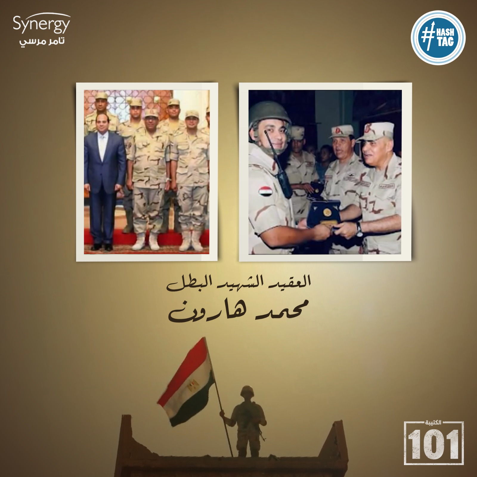 وكانت الحلقة 17 من مسلسل الكتيبة 101، شهدت نجاح رجال القوات المسلحة في التصدي للهجوم الخسيس من العناصر التكفيرية على مدينة الشيخ زويد وعدد من الأكمنة فى محاولة إنشاء ما يمسى إمارة الشيخ زويد.