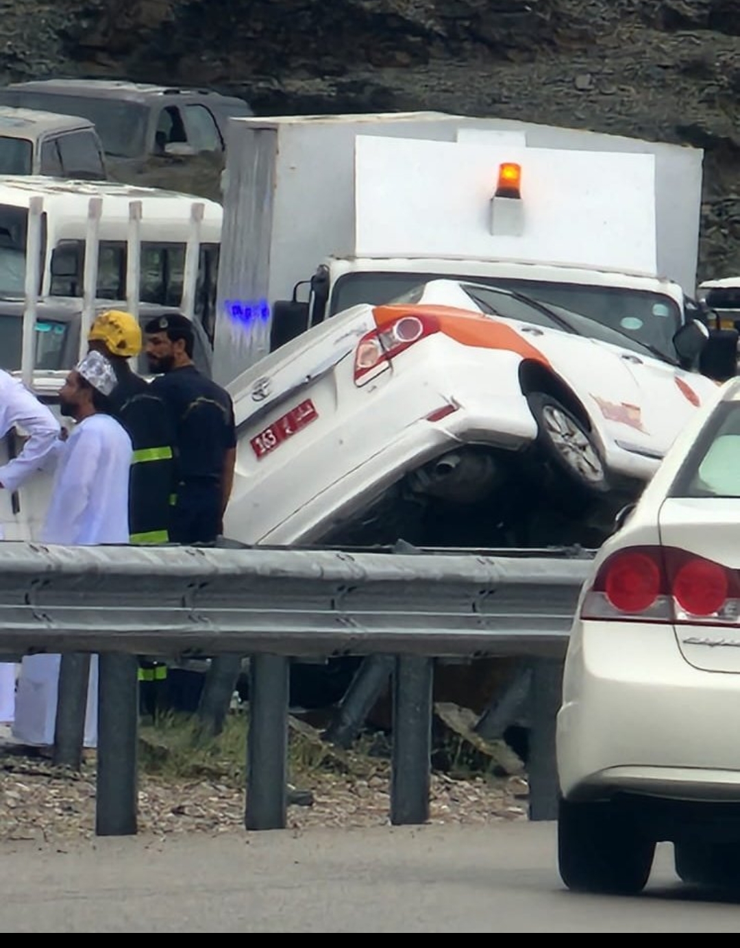 وقال الدفاع المدني والإسعاف العماني، عبر حسابه في تويتر، إن "فرق الإنقاذ بإدارة الدفاع المدني والإسعاف بمحافظة مسقط استجابت لحادث انهيار صخري على طريق العامرات ـ قريات مع تأثر بعض المركبات، دون تسجيل إصابات".