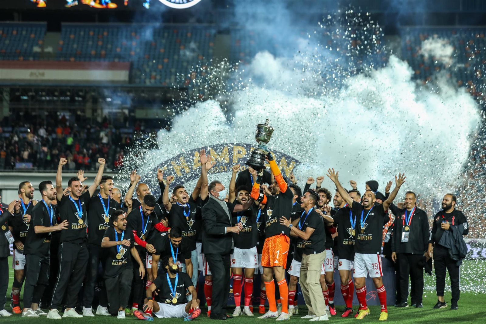 وحقق الفريق الأول لكرة القدم بالنادي الأهلي بقيادة مدربه السويسري مارسيل الفوز على نظيره فريق بيراميدز بهدفين مقابل هدف في المباراة النهائية لبطولة كأس مصر للموسم الماضي التي أقيمت على ملعب القاهرة الدولي.