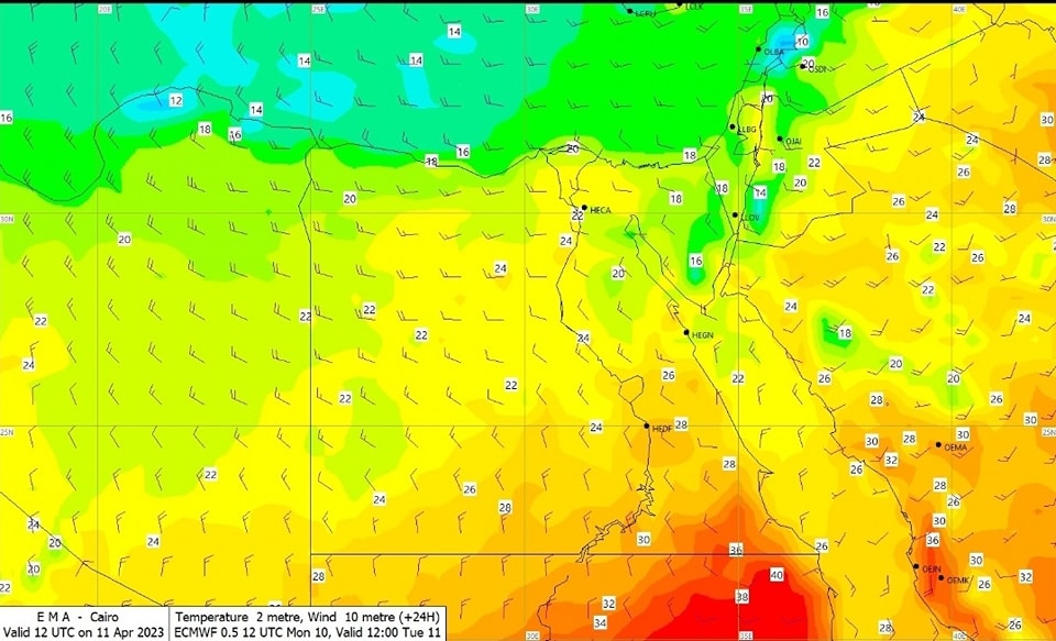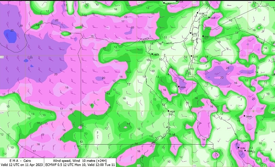 ويكون هناك نشاط للرياح على القاهرة الكبرى والوجه البحري والسواحل الشمالية وجنوب البلاد وجنوب سيناء.