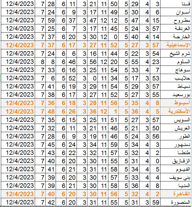 وجاءت باقي مدن الجمهورية كالتالي: