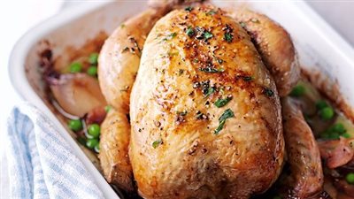 يشوى الدجاج في فرن متوسط الحرارة ساعة ونصف.