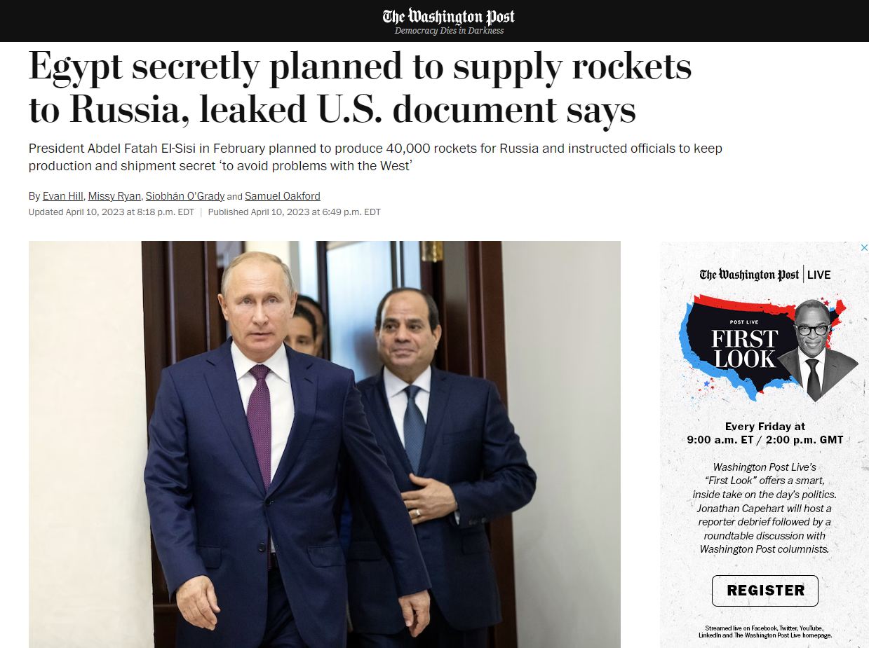 القصة انطلقت شرارتها الأولى من تسريبات نشرها موقع ديسكورت، المتخصص بالأساس في الجيمز، والمنتشر بين ممارسي الألعاب الإلكترونية في الولايات المتحدة وعدد من الدول الأوروبية، والذي نشر وثائق استخباراتية أمريكية زعم أنها مسربة من داخل السي آي إيه تشير إلى أن مصر تجهز لإنتاج عشرات الآلاف من الصواريخ ليتم شحنها سرًا إلى روسيا، التى تخوض حربا ضد أوكرانيا بدأت فى فبراير 2022 ومازالت مستمرة حتى اللحظة.