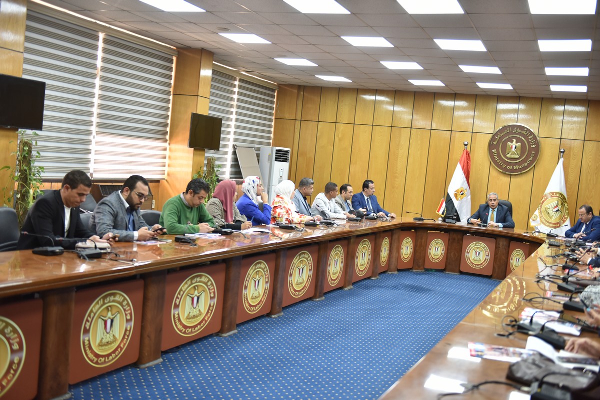 وإستمع "الوزير" إلى إستفسارات وتساؤلات المحررين المتخصصين في ملف العمل،والذين إستفسروا عن دور الوزارة في توفير فرص العمل،وخطتها نحو التوسع في قاعدة بيانات العمالة غير المنتظمة،وتفعيل دور مكاتب التمثيل العمالي في الخارج في حماية ورعاية حقوق ومستحقات العمالة المصرية،وتوعيتها بحقوقها وواجباتها طبقا للقوانين المعمول بها في تلك البلدان،وايضا "معايير العمل الدولية"،حيث تحدث الوزيرعن نصائحه المستمرة للشباب المصري بضرورة تغيير ثقافتهم تجاه العمل،وأن يُقبلوا على العمل الحر والإستفادة من كافة مبادرات الدولة التي تُشجع على العمل الحر.