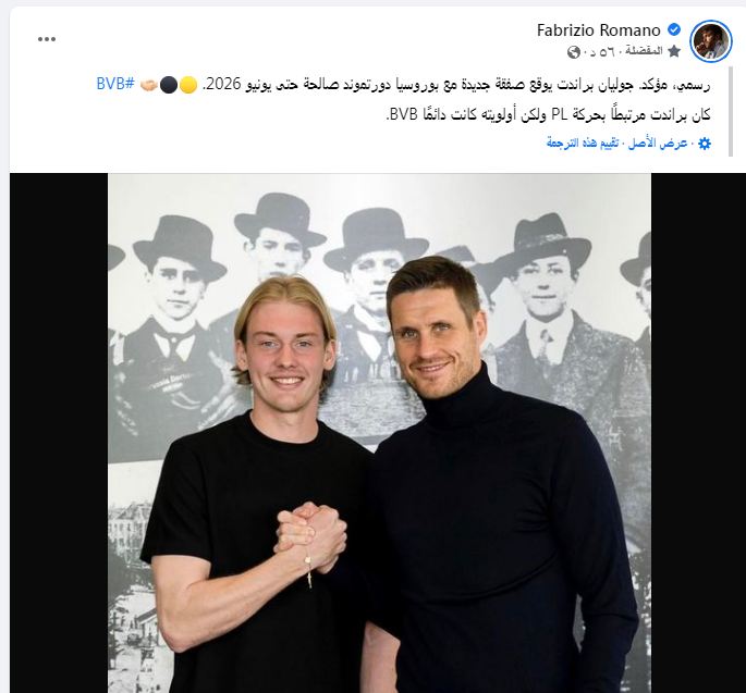 أعلن الصحفي فابريزيو رومانو الخبير في سوق الانتقالات عن تجديد نادي بوروسيا دورتموند الألماني عقده مع جوليان براندت جناح الفريق حتي يونيو عام 2026 المقبل.
