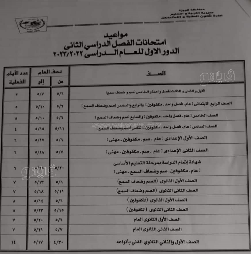 وأكدت مديرية التربية والتعليم بالجيزة أنه على من تخلف عن الحضور أو لم يحضر اليوم الأخير الالتزام بالحضور في المواعيد المقررة، علما بأن يوم الإثنين 17 أبريل إجازة رسمية بمناسبة عيد شم النسيم.
