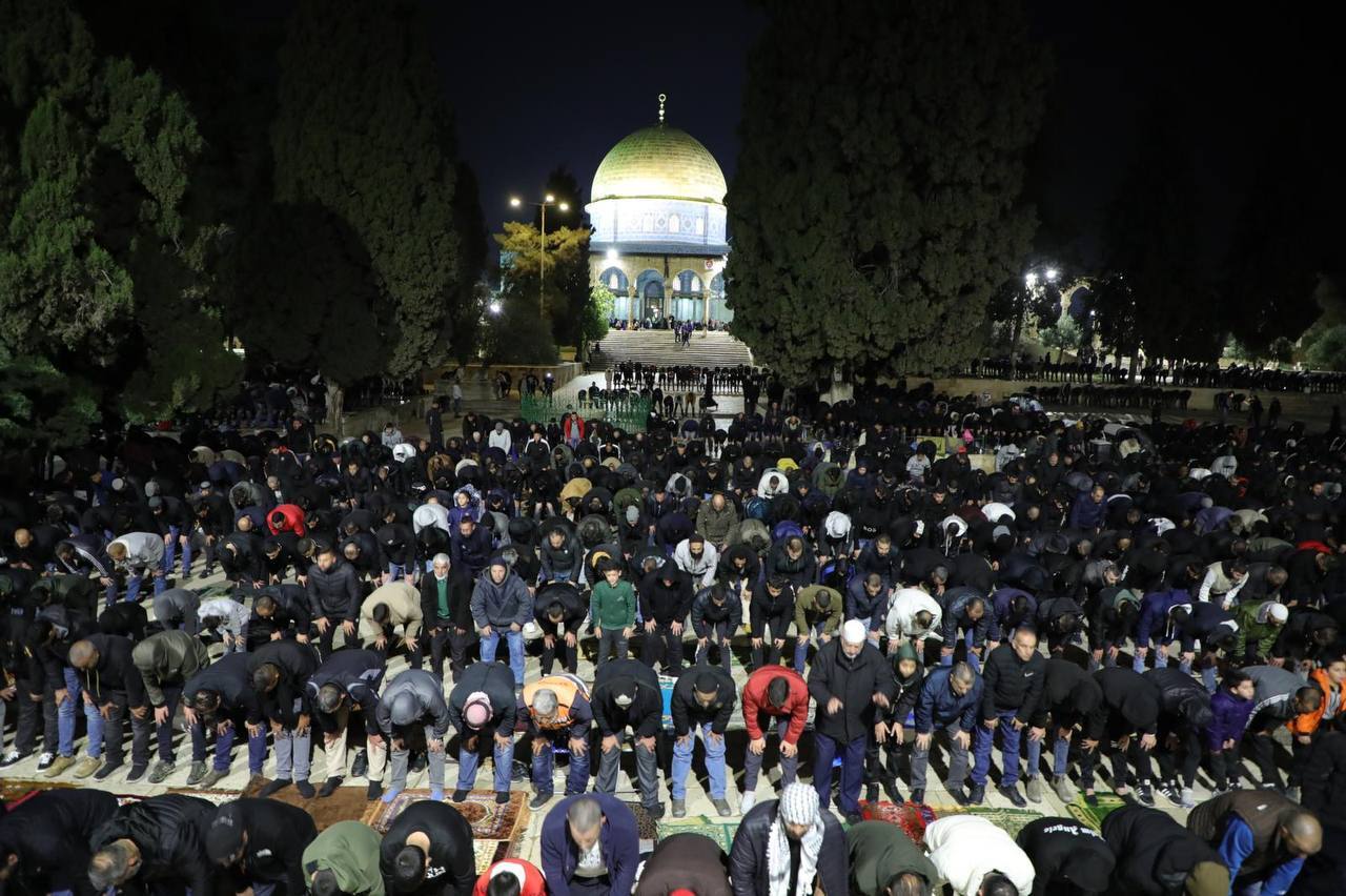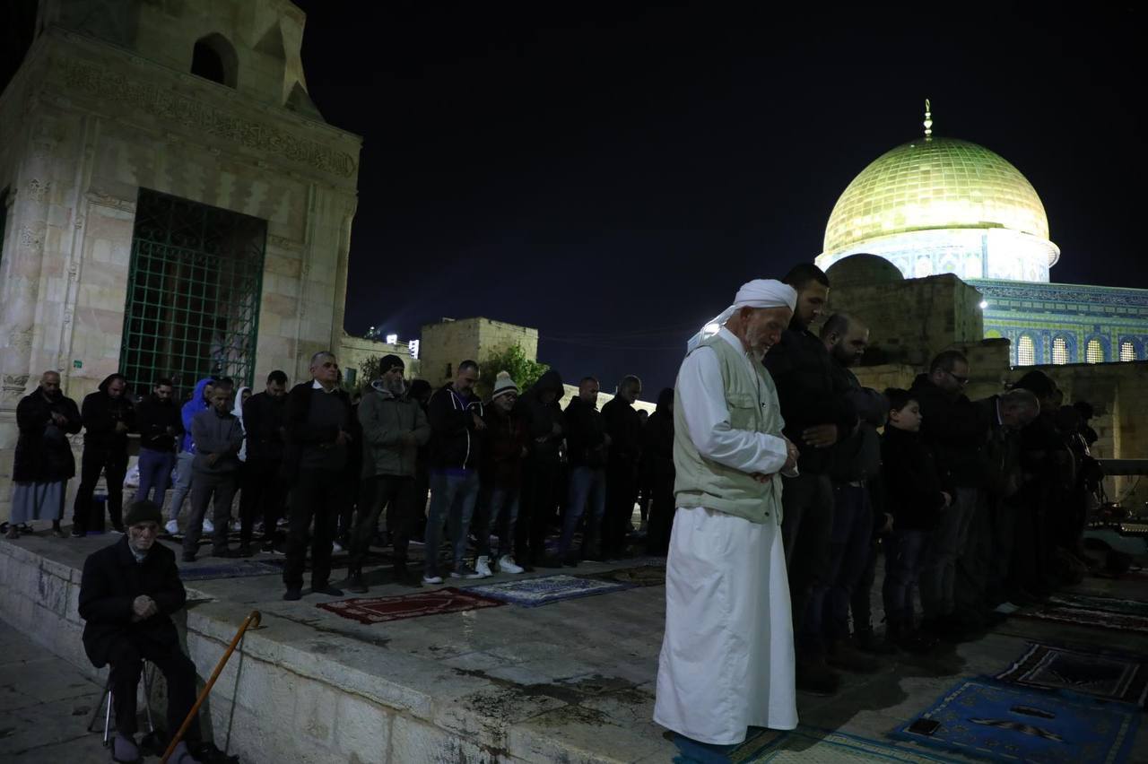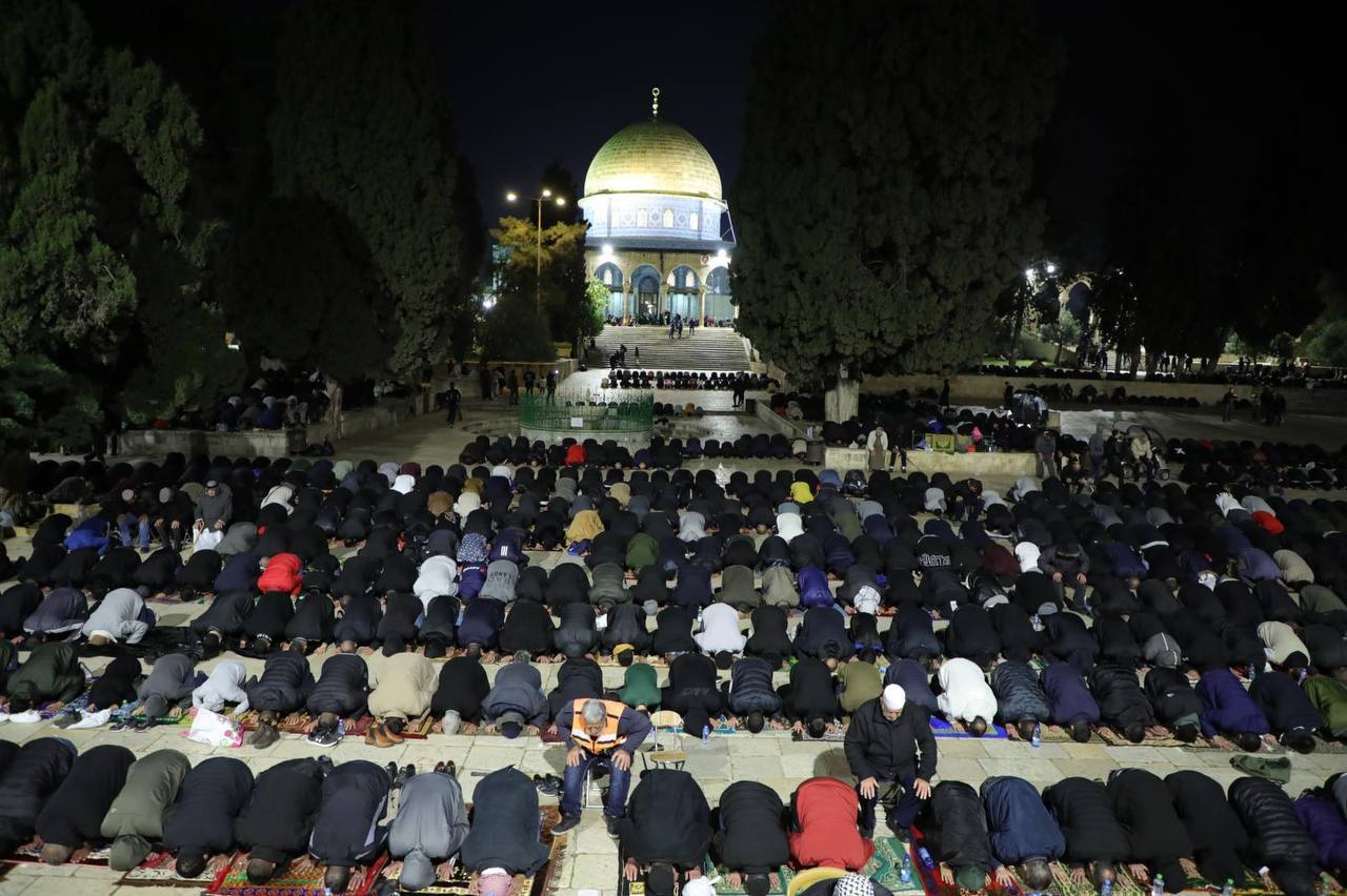 أدى 20 ألف مصلٍّ صلاتي العشاء والتراويح في المسجد الأقصى مساء الثلاثاء، رغم الإجراءات المشددة التي فرضها الجيش الإسرائيلي على وصول المصلين إلى المسجد.