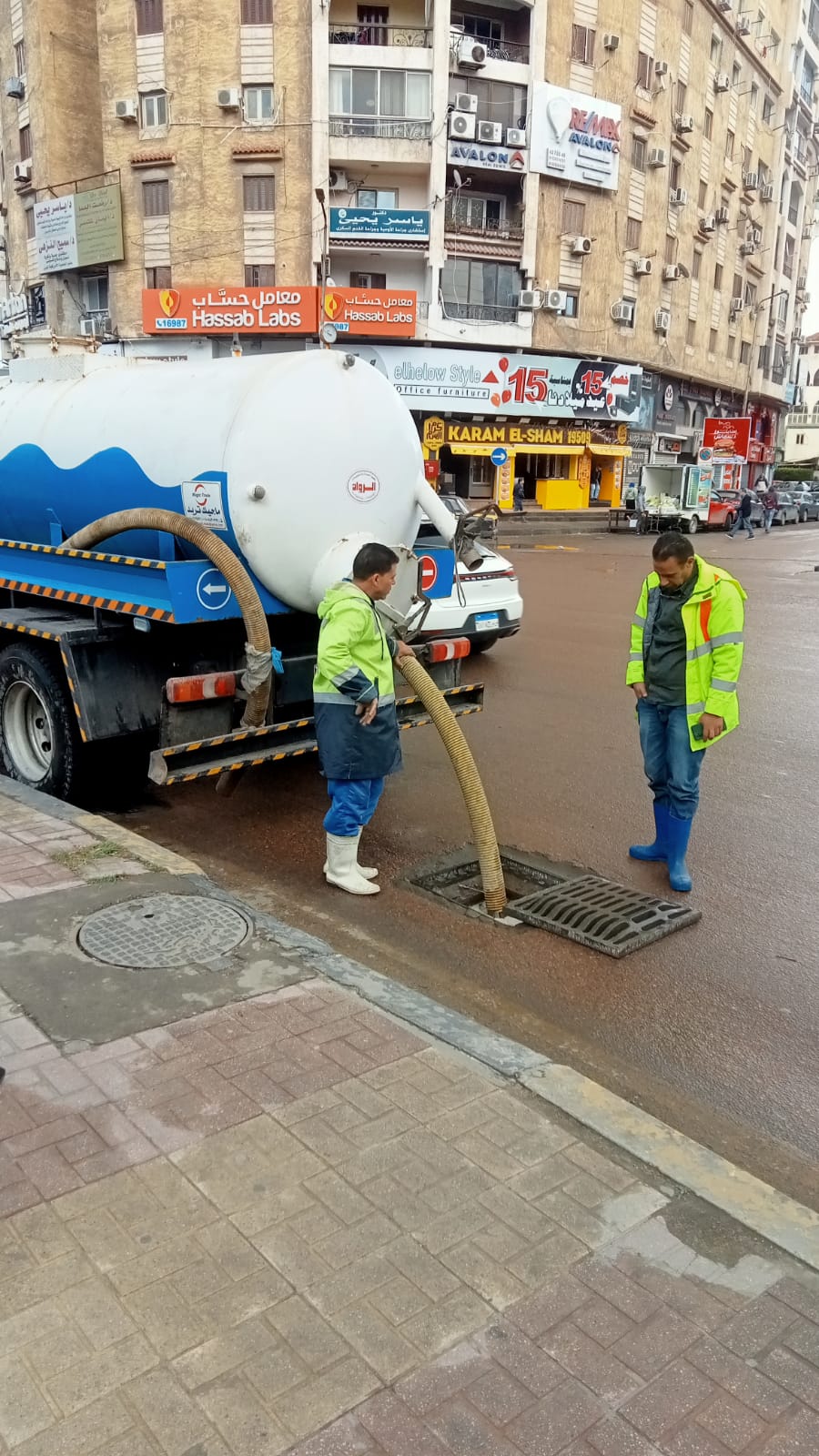 وكثفت أحياء محافظة الإسكندرية تواجدها بكافة الميادين والشوارع العامة لرفع تراكمات مياه الأمطار من شوارع وميادين المحافظة.