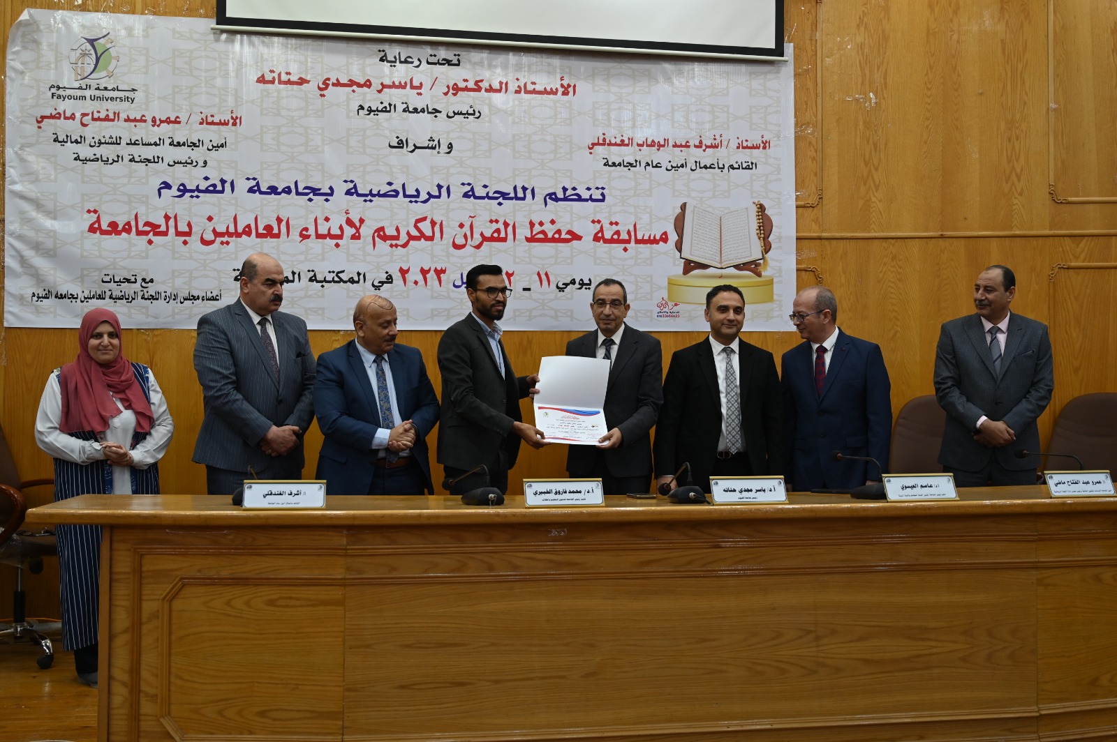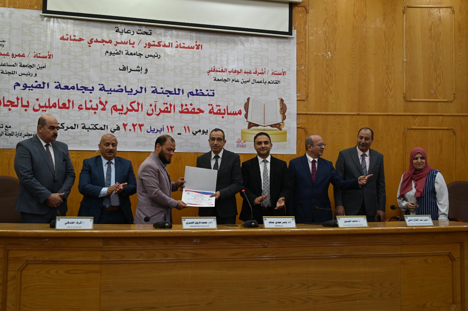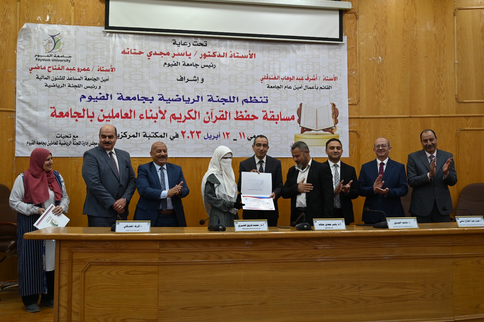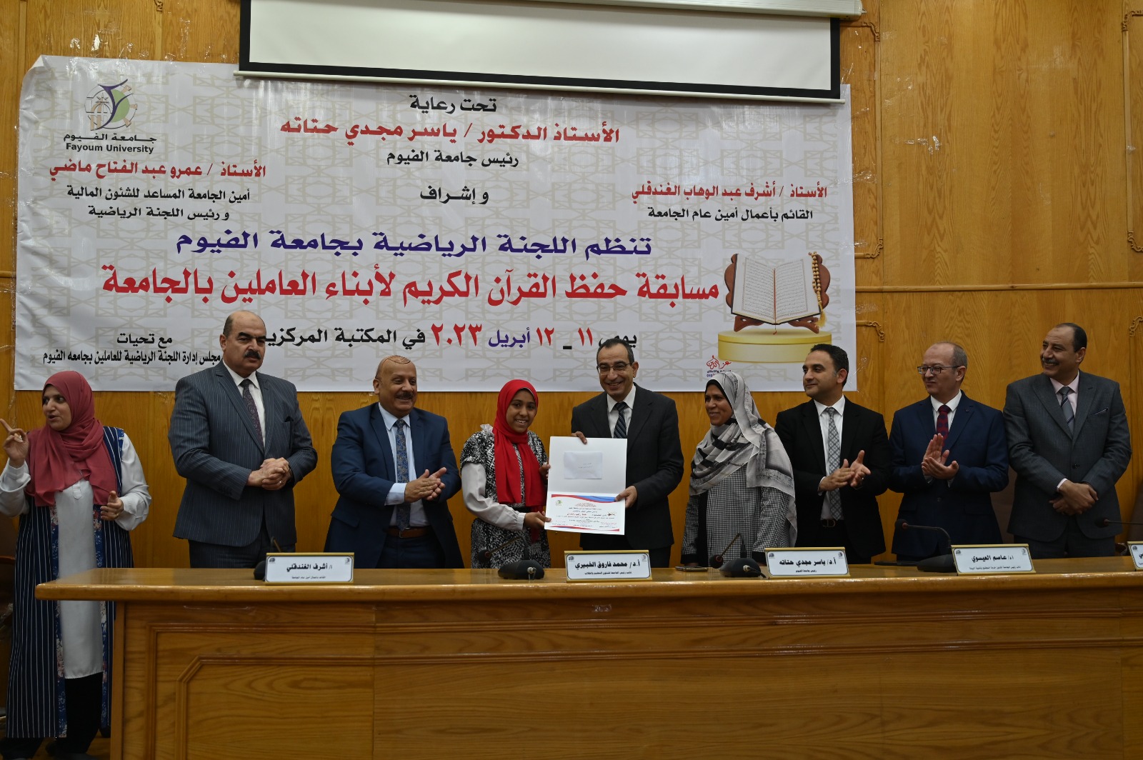 رئيس جامعة الفيوم يكرم حفظة القرآن من أبناء الإداريين